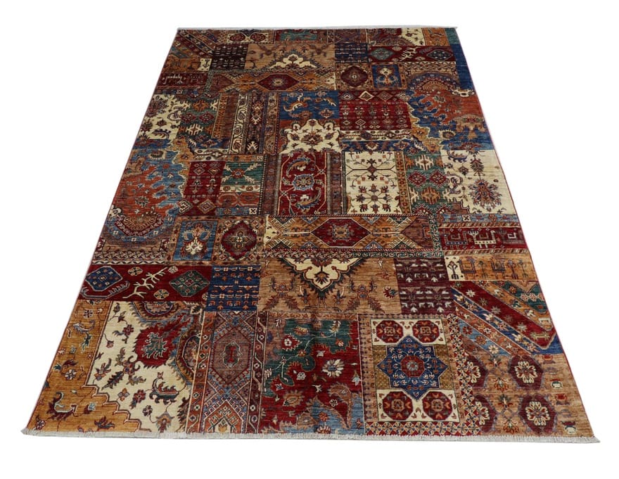 Die Farben und Muster des Teppichs sind mit natürlichen Farbstoffen gefärbt, die aus Pflanzen und Mineralien gewonnen werden. Dies verleiht dem Teppich eine angenehme Farbbrillanz und macht ihn gleichzeitig umweltfreundlich.