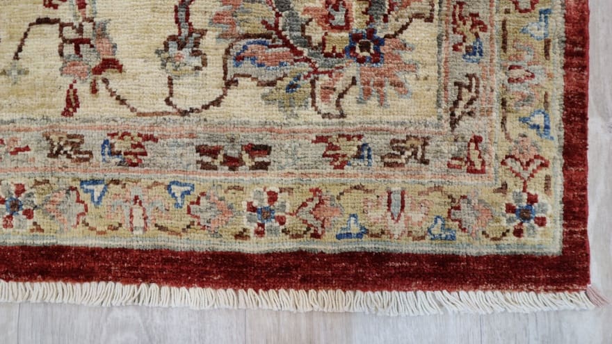 Der Ziegler Orientteppich besteht aus hochwertigen, langlebigen Materialien, die ihm nicht nur einen ansprechenden Look verleihen, sondern auch für eine hohe Strapazierfähigkeit sorgen. Mit einer dichten Knotendichte, die auf die traditionelle Teppichkunst zurückgeht, bietet dieser Teppich nicht nur einen angenehmen Fußbodenkomfort, sondern auch eine lange Lebensdauer. Die verwendeten Fasern sind sorgfältig ausgewählt und handgeknüpft, was jedem Teppich eine einzigartige Textur und ansprechende Oberflächenstruktur verleiht.