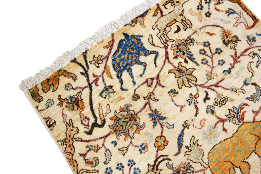 Ziegler Teppich | Knotendichte: 128.000-160.000 Knoten/m² | Material: Handgeknüpfte Wolle | Größe: 148×103 cm | Farbe: Weiß/Beige | Herkunft: Afghanistan | Zustand: Neu | Dicke: ca. 6 mm | Gewicht: ca. 6 kg