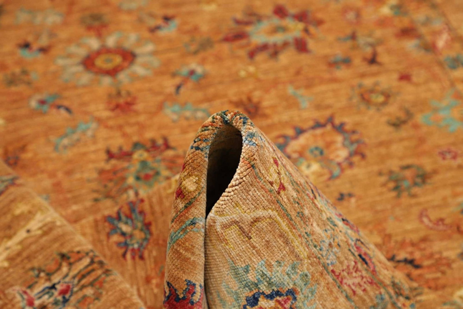 Die gesamte Struktur des Ziegler Teppichs ist sorgfältig handgeknüpft, was ihm eine unvergleichliche Dichte und Stabilität verleiht. Die Knotendichte, die auf die traditionelle Weise angepasst wird, sichert die Langlebigkeit und Robustheit des Teppichs. Handgeknüpfte Teppiche wie dieser stehen für höchste Qualität und exquisites Kunsthandwerk, wobei jeder Knoteneintrag das Ergebnis präziser Handarbeit ist. Zudem sorgt die Verwendung von Schurwolle dafür, dass der Teppich nicht nur optisch ansprechend ist, sondern auch praktisch, da die natürliche Struktur der Wolle verhindern kann, dass sich Schmutz am Teppich festsetzt.
