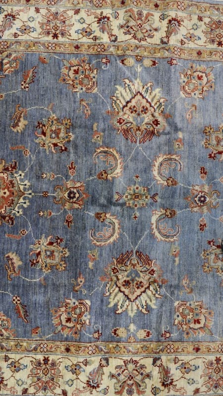 Ziegler Teppich | Knotendichte: 200.000 – 250.000 Knoten/m² | Material: Hochwertige Wolle | Größe: 212×155 cm | Zustand: Neu | Ursprung: Pakistan | Farbe: Blau/Türkis | Verarbeitung: Handgeknüpft | Dicke: ca. 6 mm | Gewicht: ca. 10 kg | Form: Rechteckig