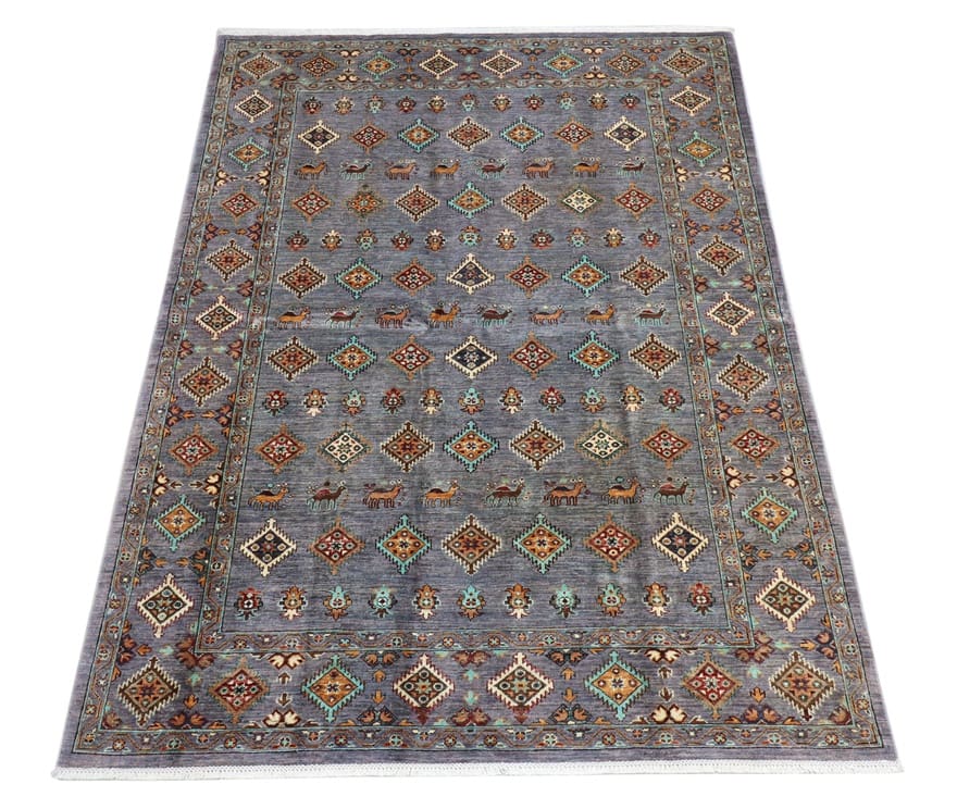 Ziegler Teppich | Knotendichte: 160.000 – 200.000 Knoten/m² | Material: Handgesponnene Wolle und Baumwolle | Größe: 241×173 cm | Farbe: Schwarz/Grau | Zustand: Neu | Herkunft: Pakistan