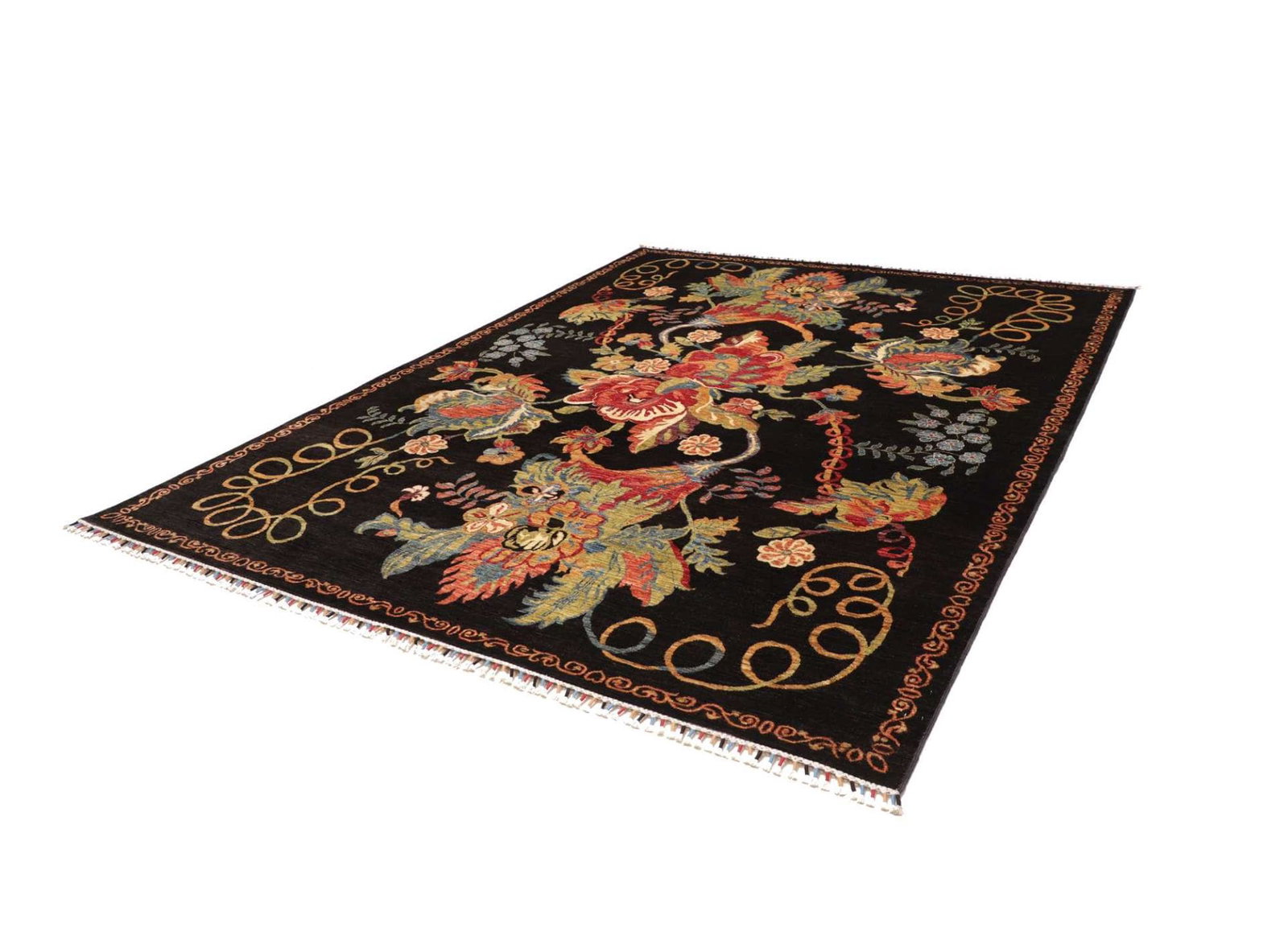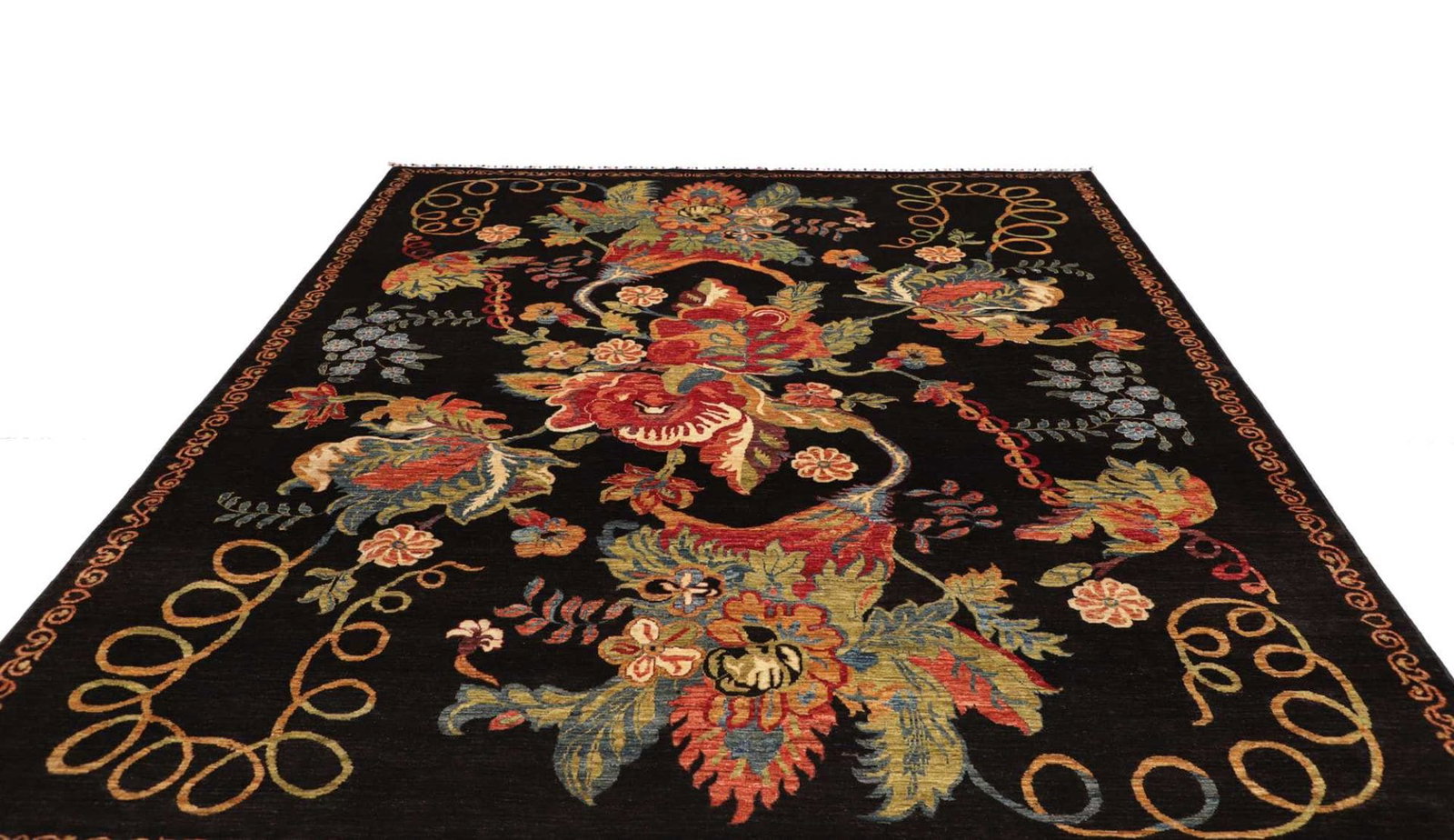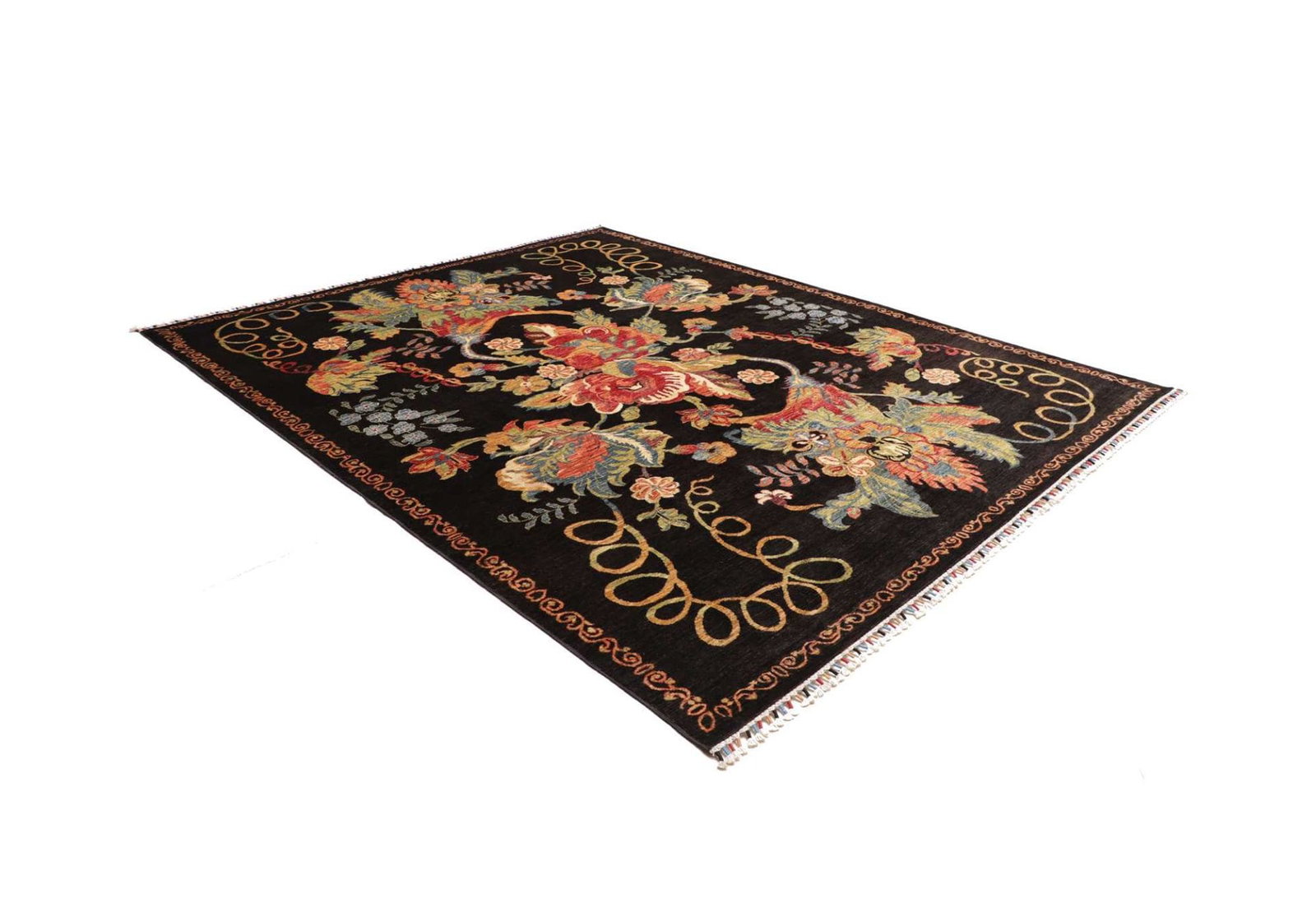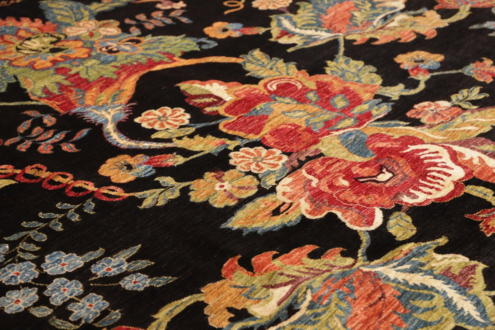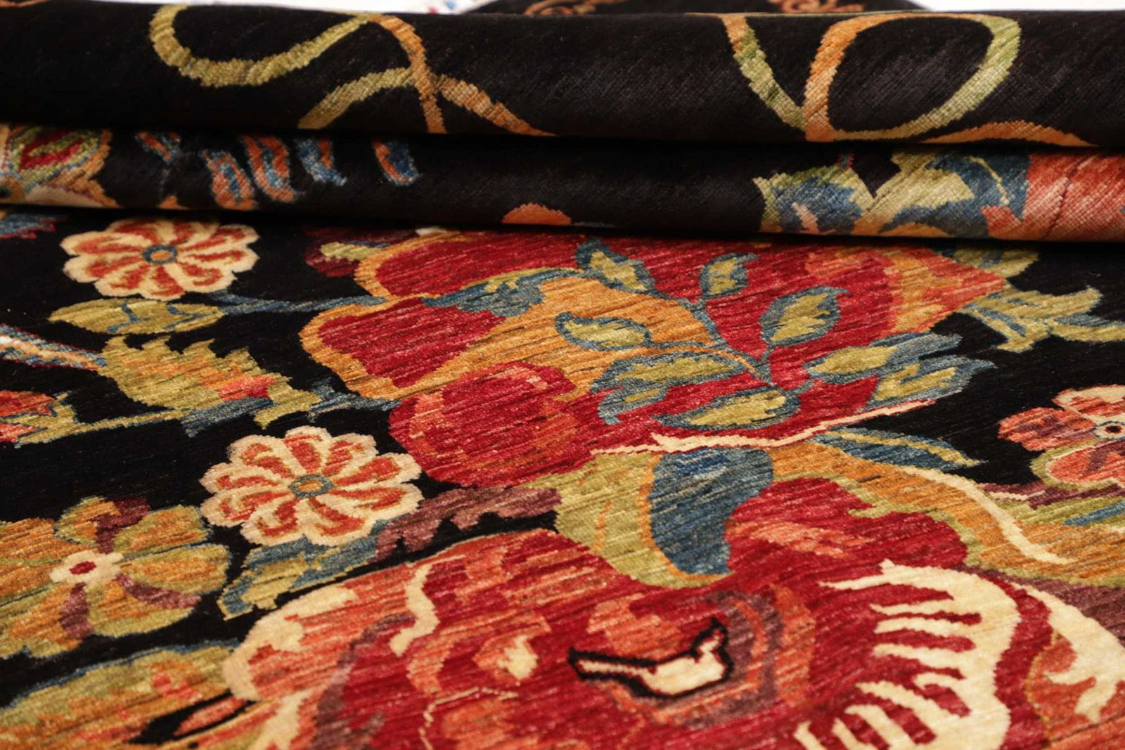 Die Knoten sind so gesetzt, dass sie eine tiefe Struktur ergeben, die Licht unterschiedlich reflektiert, was dem Teppich eine lebendige Erscheinung verleiht. Die harmonische Farbgebung und die kunstvollen Muster machen diesen Teppich zu einem Blickfang in jedem Raum.