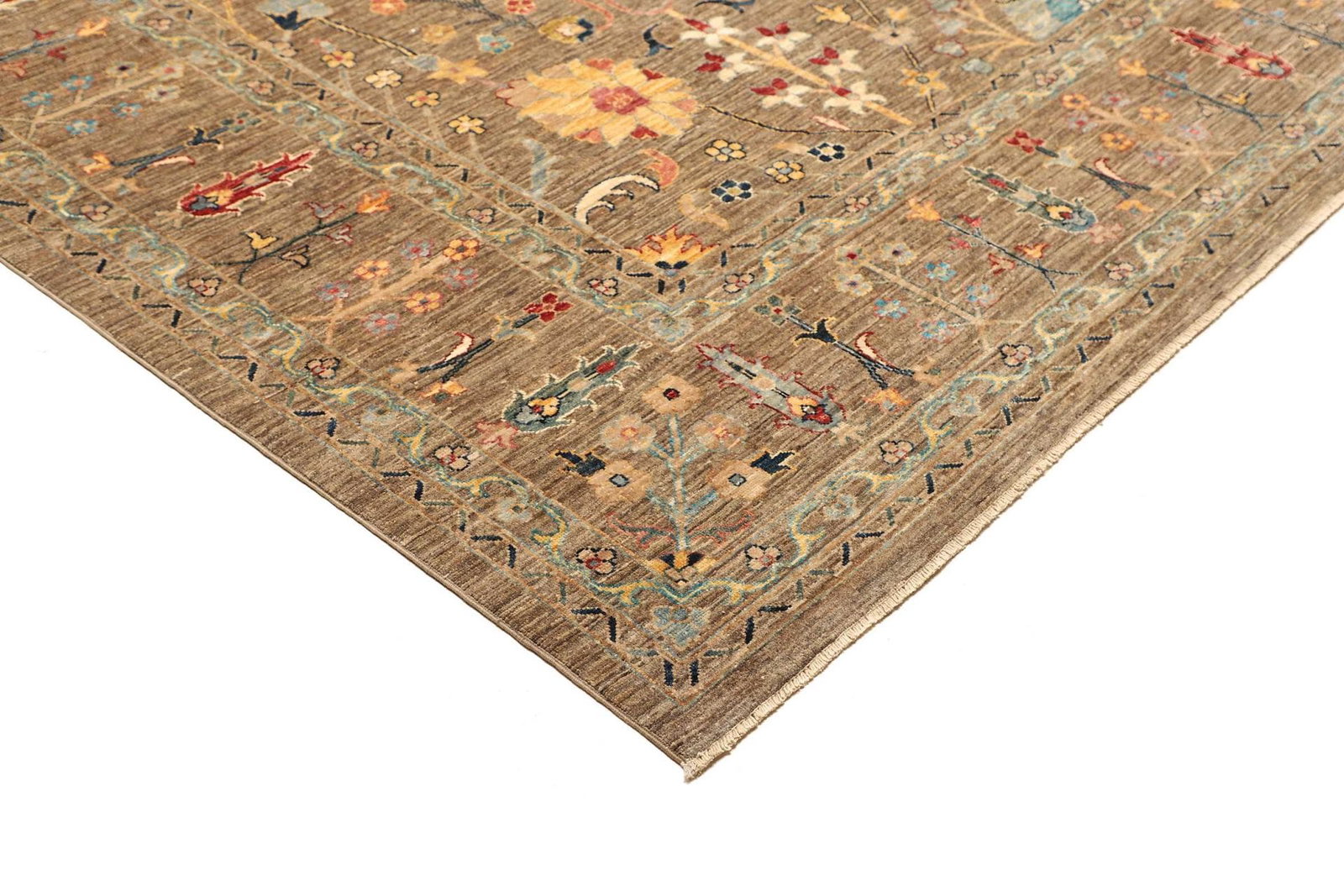 Der Ziegler Teppich ist aus 100% Schurwolle gefertigt, einem Material, das für seine Robustheit und gleichzeitig weiche Haptik bekannt ist. Schurwolle ist nicht nur äußerst langlebig, sondern bietet auch eine natürliche Temperaturregulierung und ist zudem schmutzabweisend. Die handgeknüpfte Technik sorgt für eine hohe Knotendichte, weshalb dieser Teppich nicht nur schön anzusehen ist, sondern auch eine lange Lebensdauer aufweist. Diese Art der Verarbeitung ist ein Zeichen für traditionelle Teppichkunst und verdeutlicht, dass jede Faser mit viel Liebe zum Detail gefertigt wurde.
