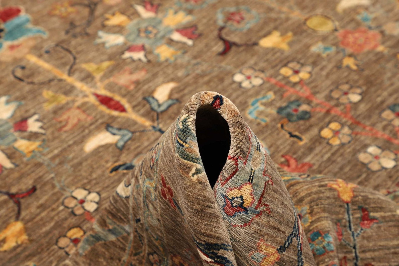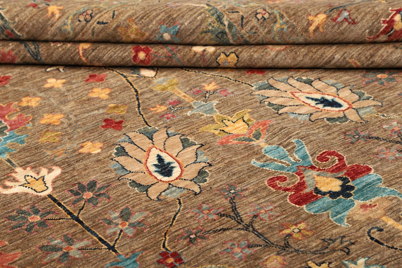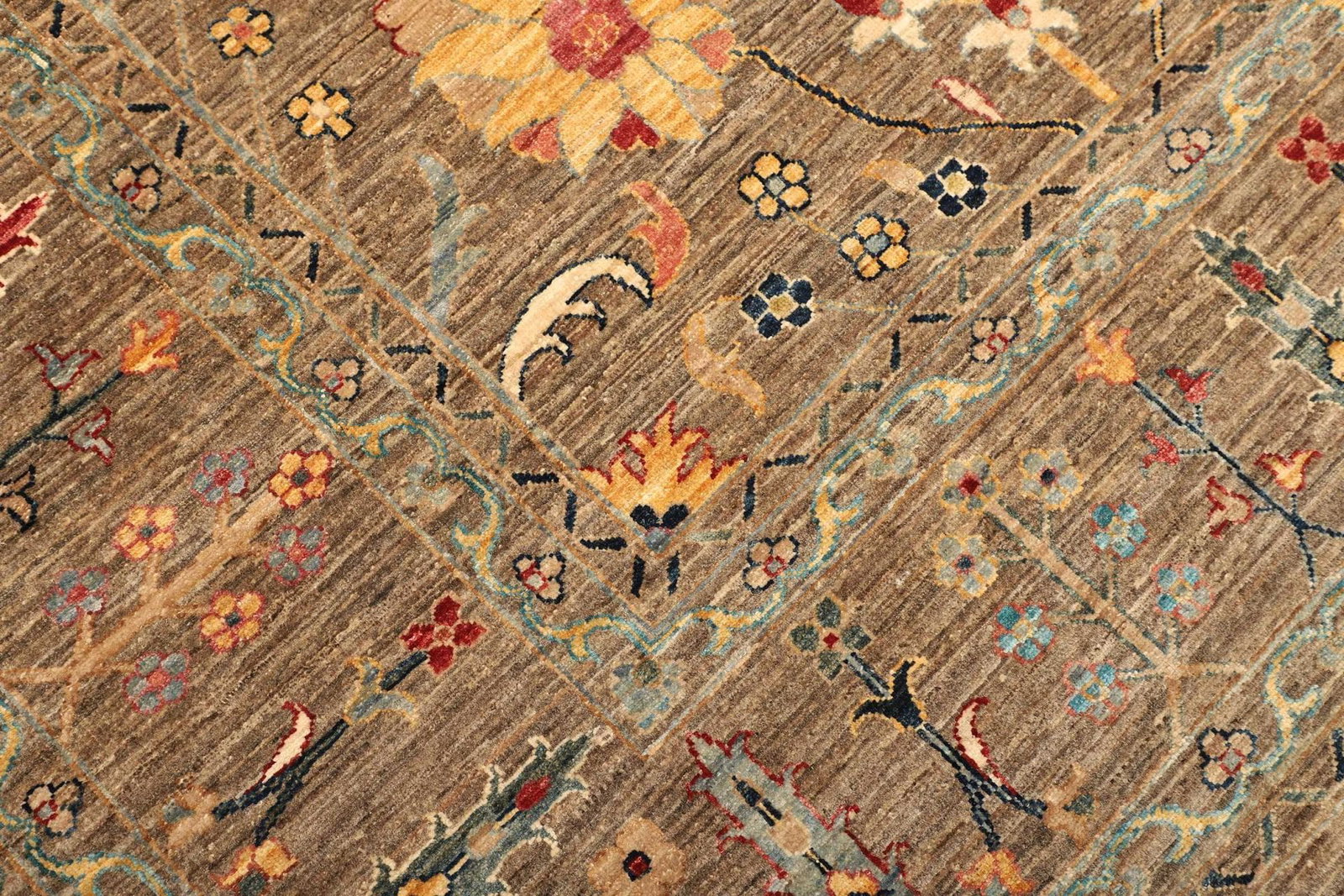 Die Knotendichte ist ein wichtiger Indikator für die Qualität eines handgeknüpften Teppichs. Je höher die Knotenzahl pro Quadratmeter, desto feiner und detailgetreuer ist das Design. Auch die verwendeten Materialien – in diesem Fall hochwertige Schurwolle – sind entscheidend für die Langlebigkeit und das Erscheinungsbild des Teppichs.