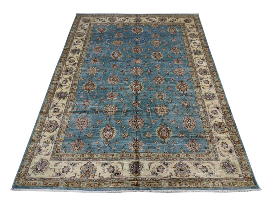 Ziegler Teppich | Knotendichte: 160.000 – 200.000 Knoten/m² | Material: Handgesponnene Wolle und Baumwolle | Größe: 345×256 cm | Farbe: Blau/Türkis | Form: Rechteckig | Zustand: Neu | Ursprung: Pakistan | Dicke: ca. 10 mm | Gewicht: ca. 30 kg