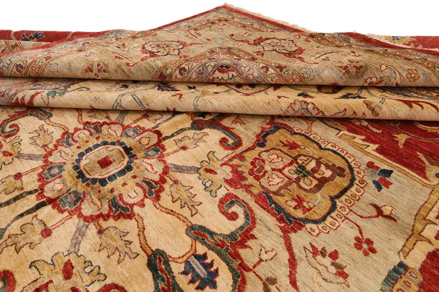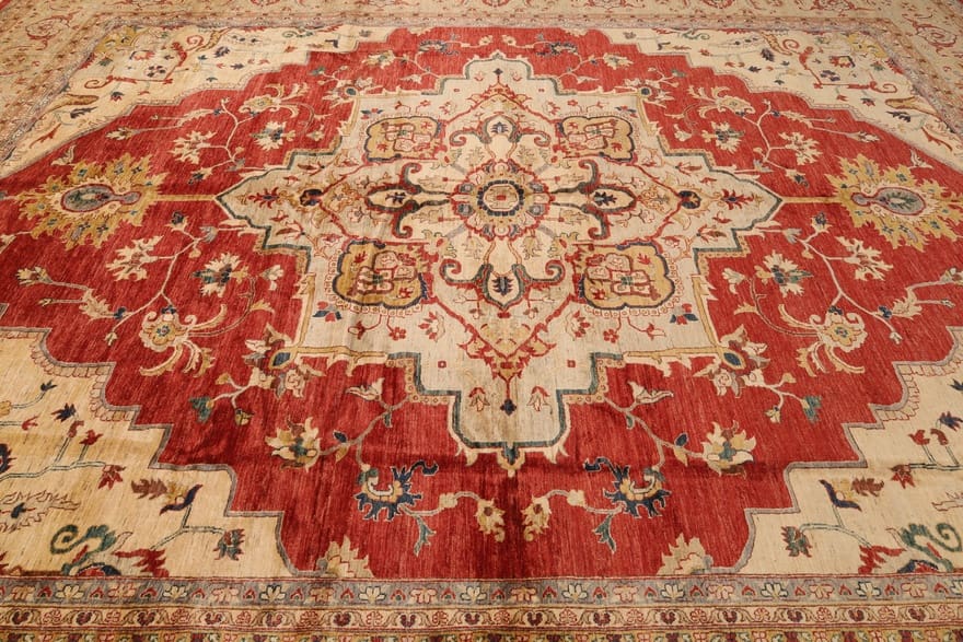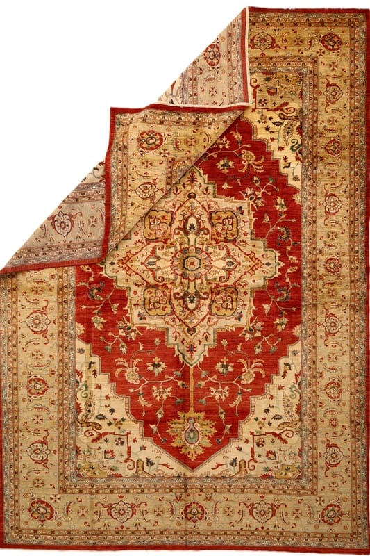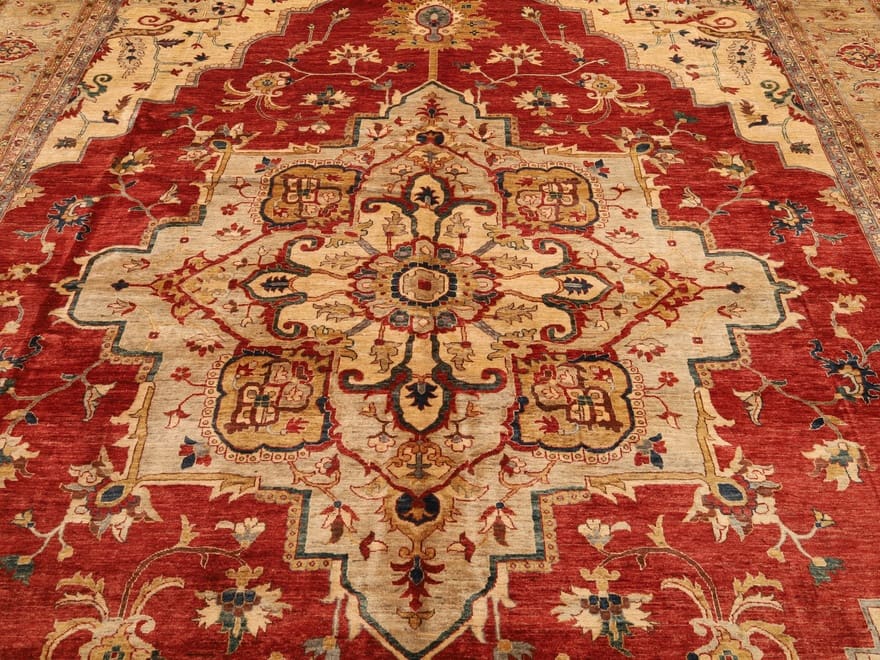 ZieglerDesignHeriz Teppich | Knotendichte: 160.000-200.000 Knoten/m² | Material: Handgesponnene Wolle | Größe: 496×397 cm | Farbe: Rot/Orange | Zustand: Neu | Ursprung: Pakistan | Verarbeitung: Handgeknüpft | Florhöhe: ca. 8 mm | Schmutzabweisend und wärmeisolierend