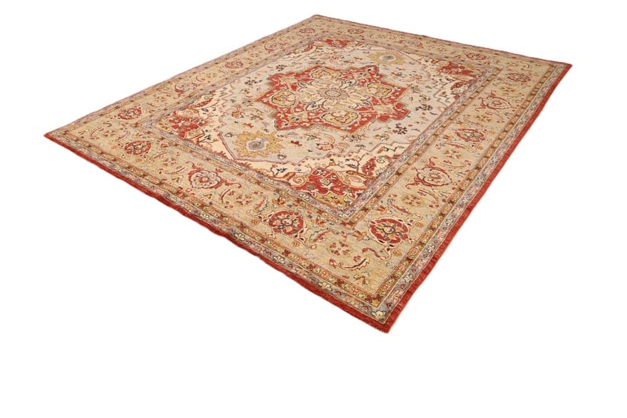 ZieglerDesignHeriz Teppich | Knotendichte: 160.000-200.000 Knoten/m² | Material: Handgesponnene Wolle | Größe: 295×248 cm | Herkunft: Pakistan | Zustand: Neu | Eigenschaften: Schmutzabweisend, wärmeisolierend, weich, glänzend, langlebig | Verarbeitung: Handgeknüpft | Gewicht: ca. 22 kg