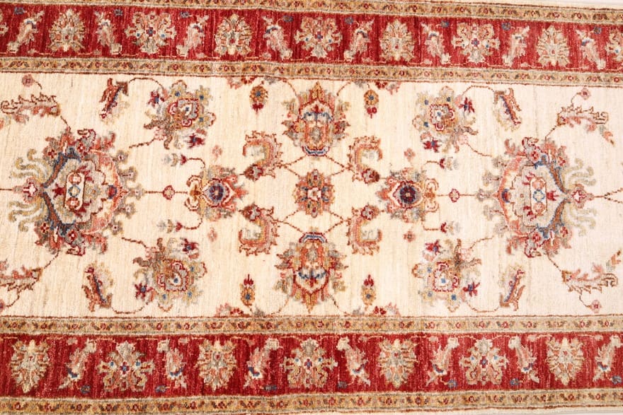 Zieglerfarhan Teppich | Knotendichte: 160.000-200.000 Knoten/m² | Material: Handgesponnene Wolle | Größe: 248×83 cm | Farbe: Weiß/Beige | Zustand: Neu | Ursprung: Pakistan | Eigenschaften: Schmutzabweisend, wärmeisolierend, weich, glänzend, langlebig | Verarbeitung: Handgeknüpft