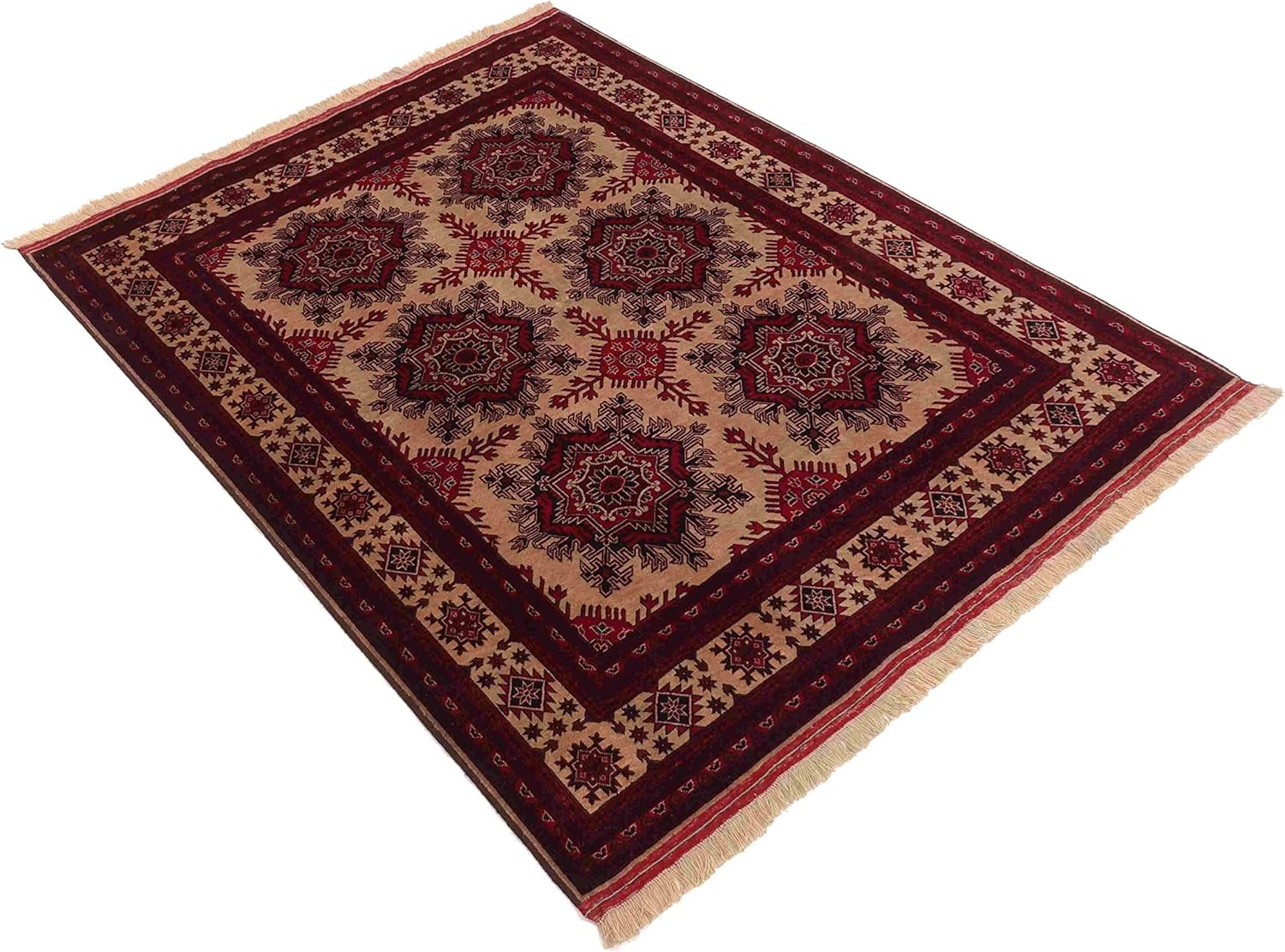 Top-Angebot: Afghan Khal Mohammadi Belgique Rug 150 x 200 cm Hand-Knotted Beige Geometric