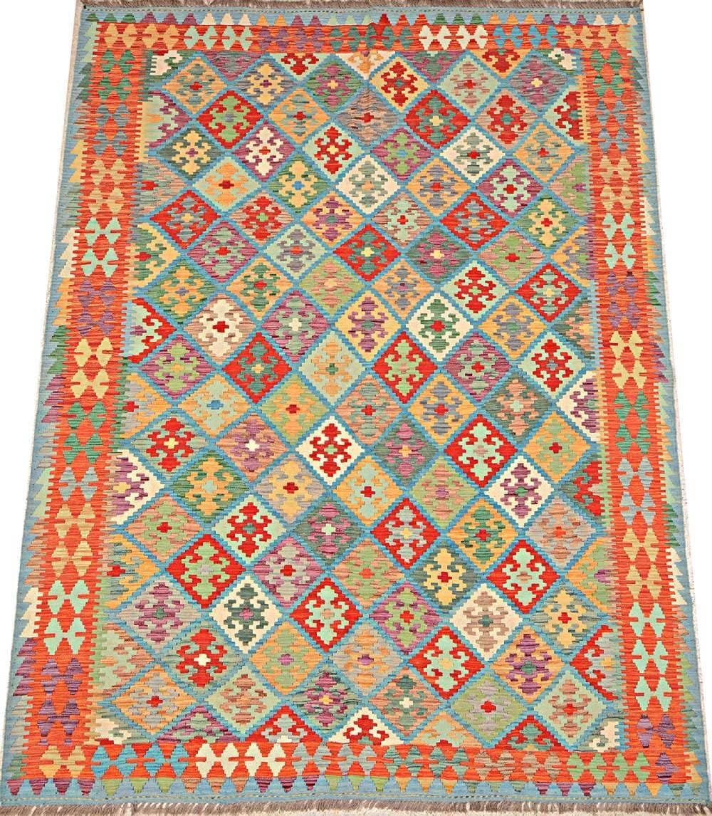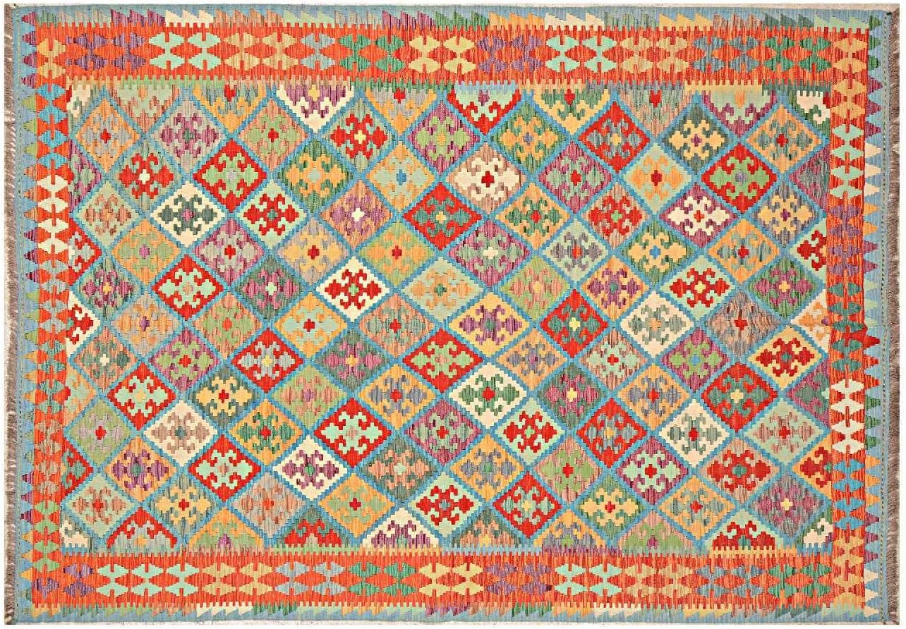Jetzt entdecken: Afghan Maimana Kilim Rug 200 x 300 cm Hand-Woven Colourful Geometric Handmade