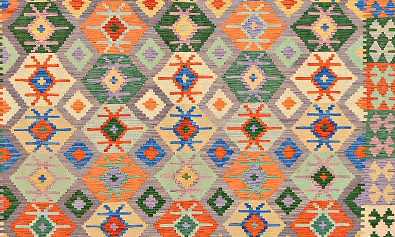Top-Angebot: Afghan Maimana Kilim Rug, 200 x 300 cm, Handwoven, Colourful, Geometric, Handmade