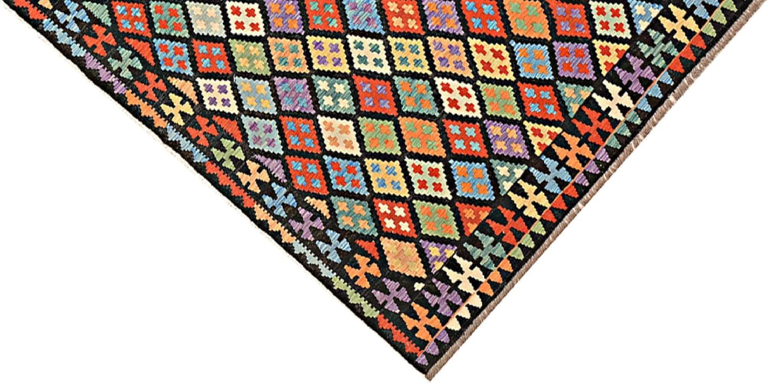 Ein handgeknüpfter Orientteppich ist nicht nur ein Bodenbelag – er ist Kunst, Kultur und Wertanlage zugleich. Mit dem Afghan Maimana Kilim Rug, 200 x 300 cm, Handwoven, Colourful, Geometric, Handmade x holen Sie sich ein Stück Geschichte in Ihre vier Wände.