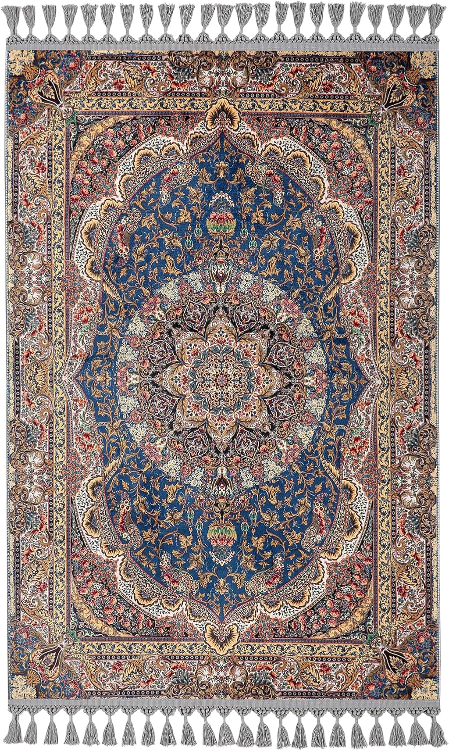 Ein handgeknüpfter Orientteppich ist nicht nur ein Bodenbelag – er ist Kunst, Kultur und Wertanlage zugleich. Mit dem allmode homestyle şekil Traditional Turkish Prayer Rug Blue Medallion Design Decorative Tassels Oriental Pattern Living Room Rug holen Sie sich ein Stück Geschichte in Ihre vier Wände.