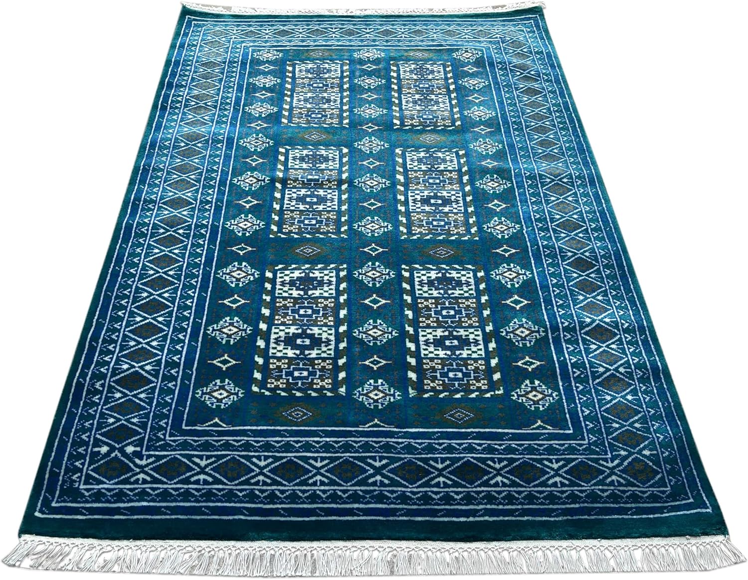 Top-Angebot: Amma Carpets Traditional Hand Knotted Wool Rug 120 x 180 cm Blue Geometric Tribal Pattern