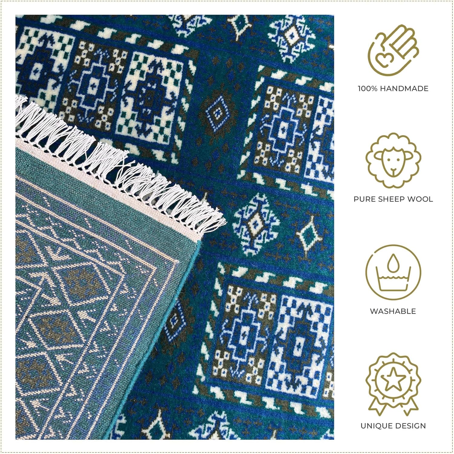 Top-Angebot: Amma Carpets Traditional Hand Knotted Wool Rug 120 x 180 cm Blue Geometric Tribal Pattern