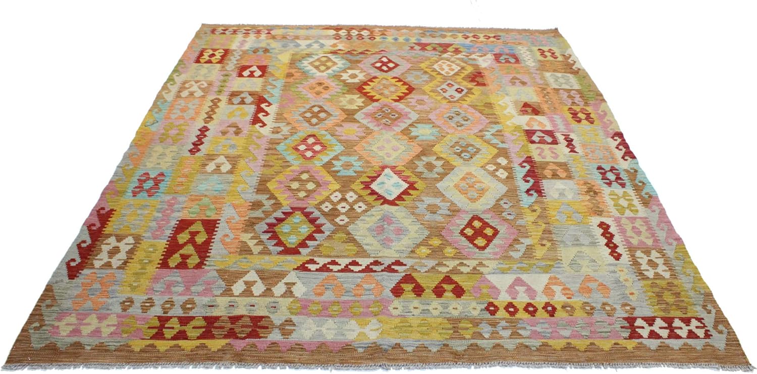 Ein handgeknüpfter Orientteppich ist nicht nur ein Bodenbelag – er ist Kunst, Kultur und Wertanlage zugleich. Mit dem ARICARPETS – Kilim Rug Old Style with Geometric Oriental Design, Kilim Rug 100% Wool, Hand Knotted Kilim, Hallway Rug, Living Room, Bedroom, Living Room (250 x 212 cm) holen Sie sich ein Stück Geschichte in Ihre vier Wände.