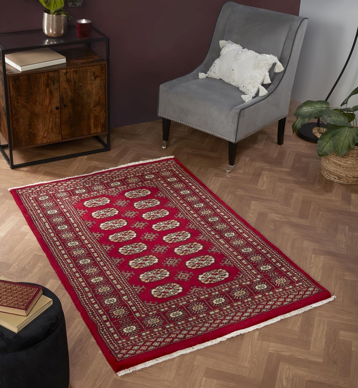 Jetzt entdecken: BOKHARA Traditional Rug Handmade Oriental Wool Bedroom Living Room Dining Luxury Area Rug Red XL 200x300cm