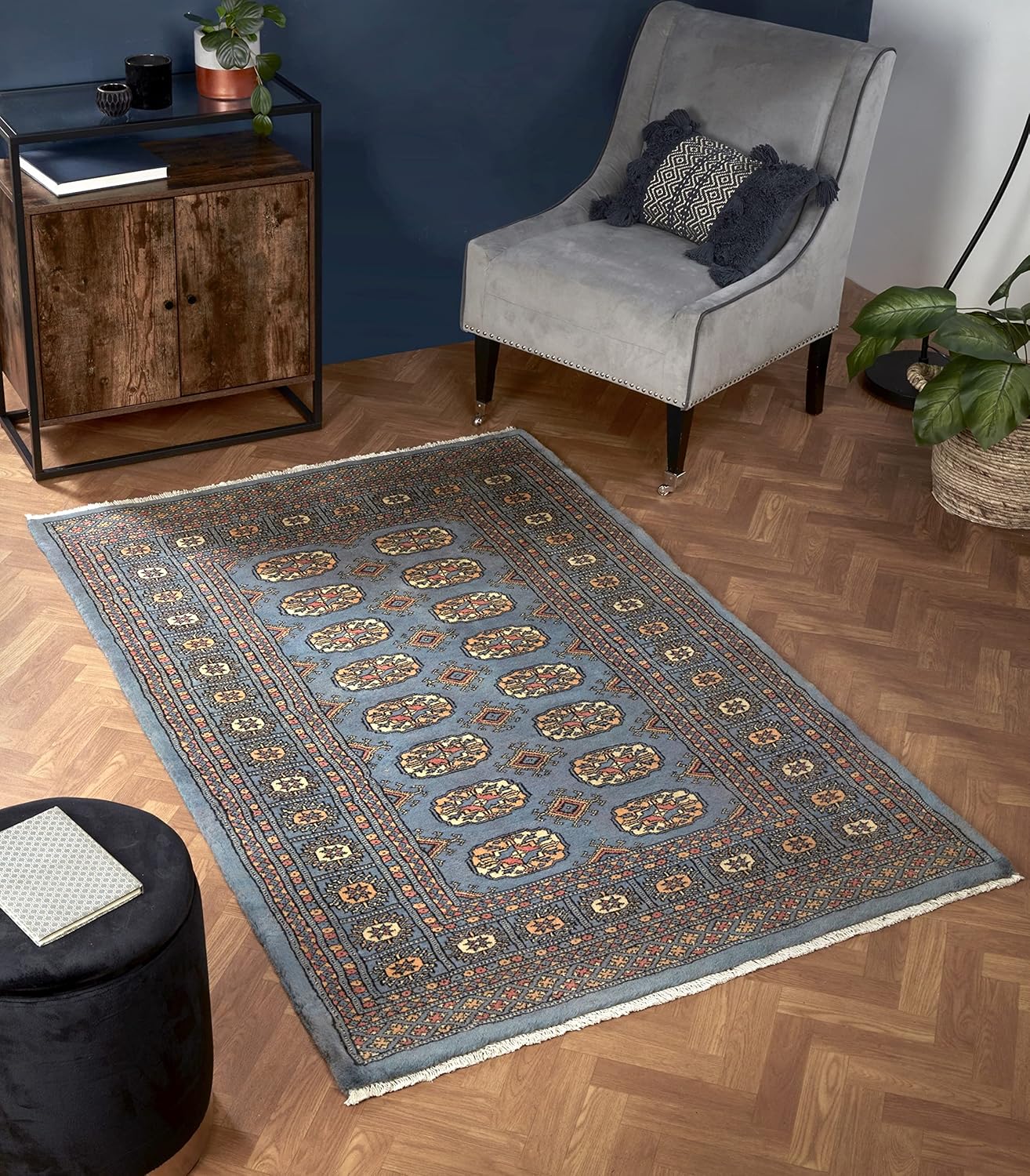 Ein handgeknüpfter Orientteppich ist nicht nur ein Bodenbelag – er ist Kunst, Kultur und Wertanlage zugleich. Mit dem BOKHARA Traditional Rug Handmade Oriental Wool Bedroom Living Room Dining Luxury Area Rugs Blue XL 200x300cm holen Sie sich ein Stück Geschichte in Ihre vier Wände.