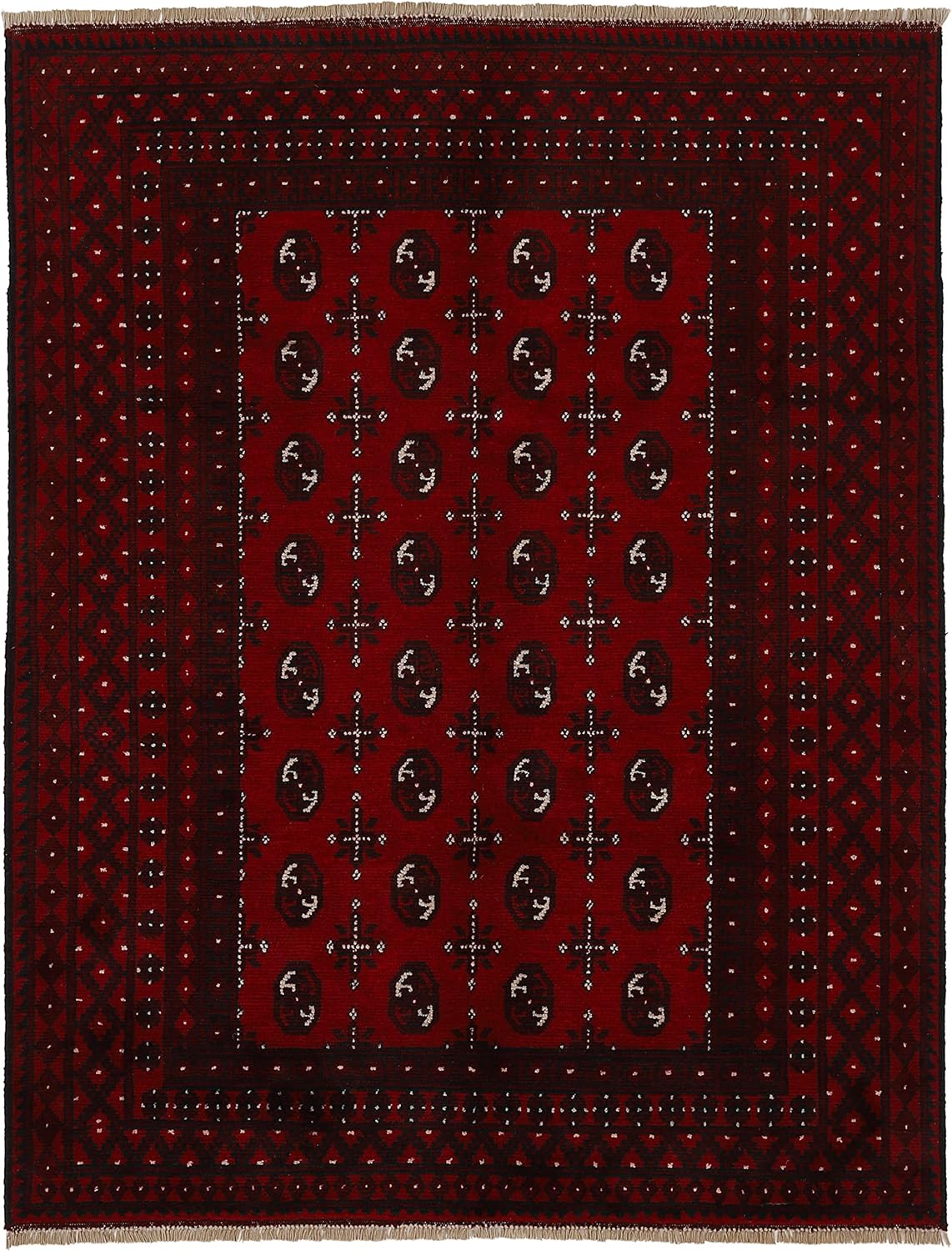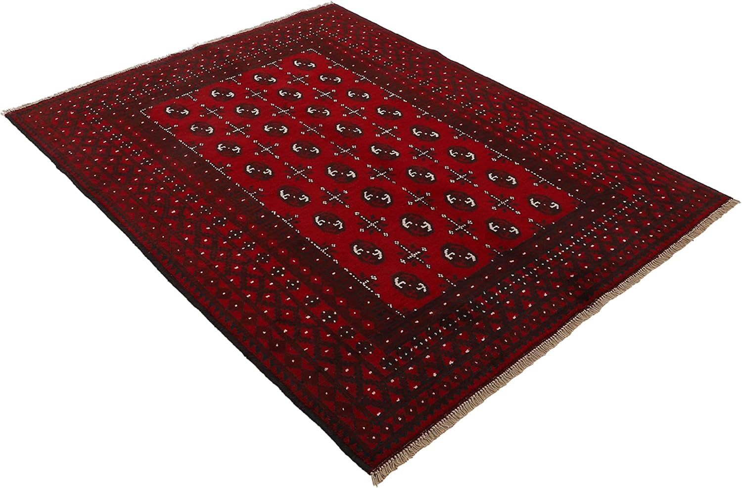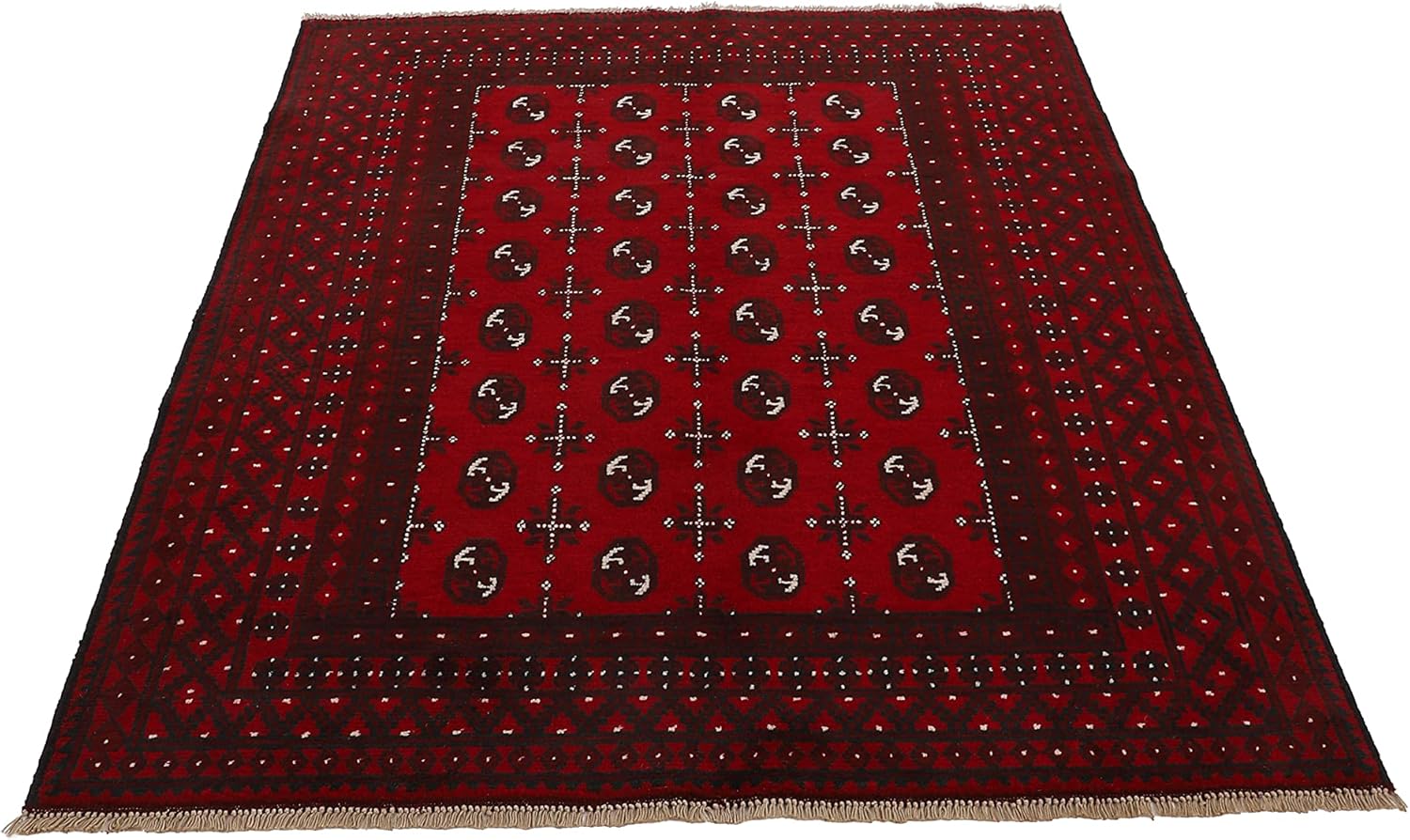 Top-Angebot: carpetfine Oriental Afghan Akhche Bokhara Rug, Red, 240 x 340 cm, Hand-Knotted Rug for Living Room and Bedroom