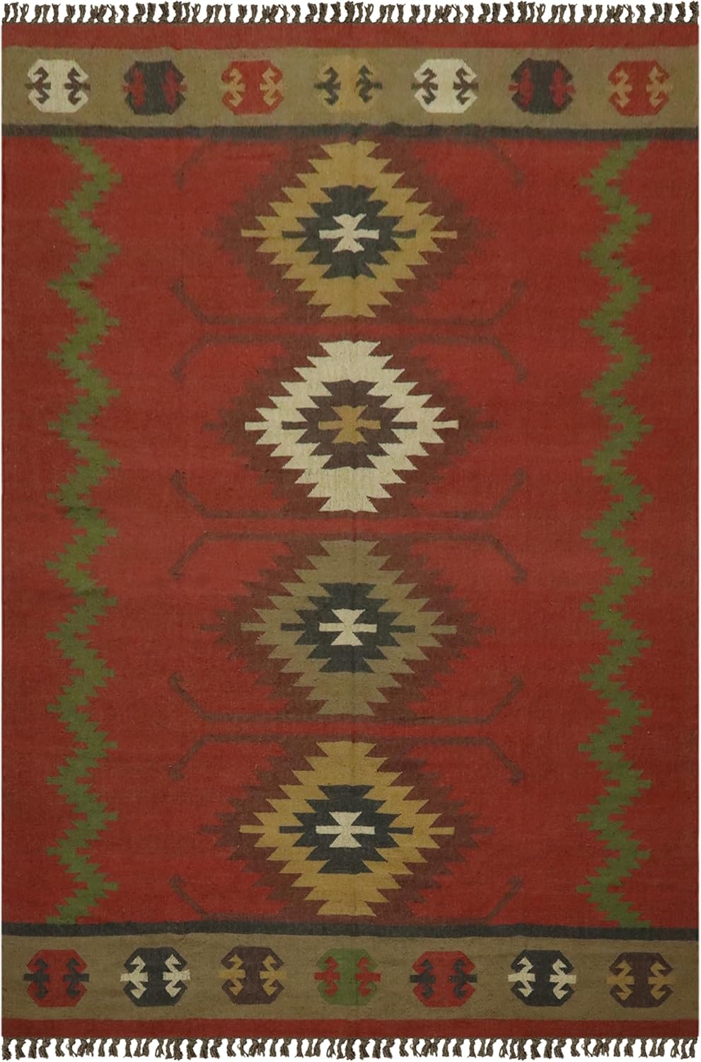 Empfehlung: CASAVANI – 8″ x 11″ Reversible Kilim Rug Red Multicolor Wool and Jute Hand Woven Indoor Outdoor Flat Weave High Traffic Area Lake House Bedroom