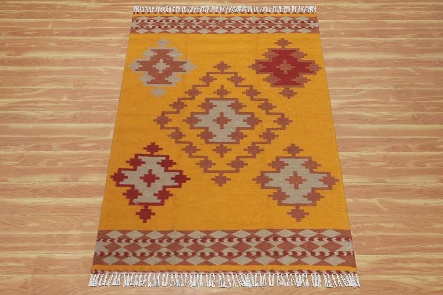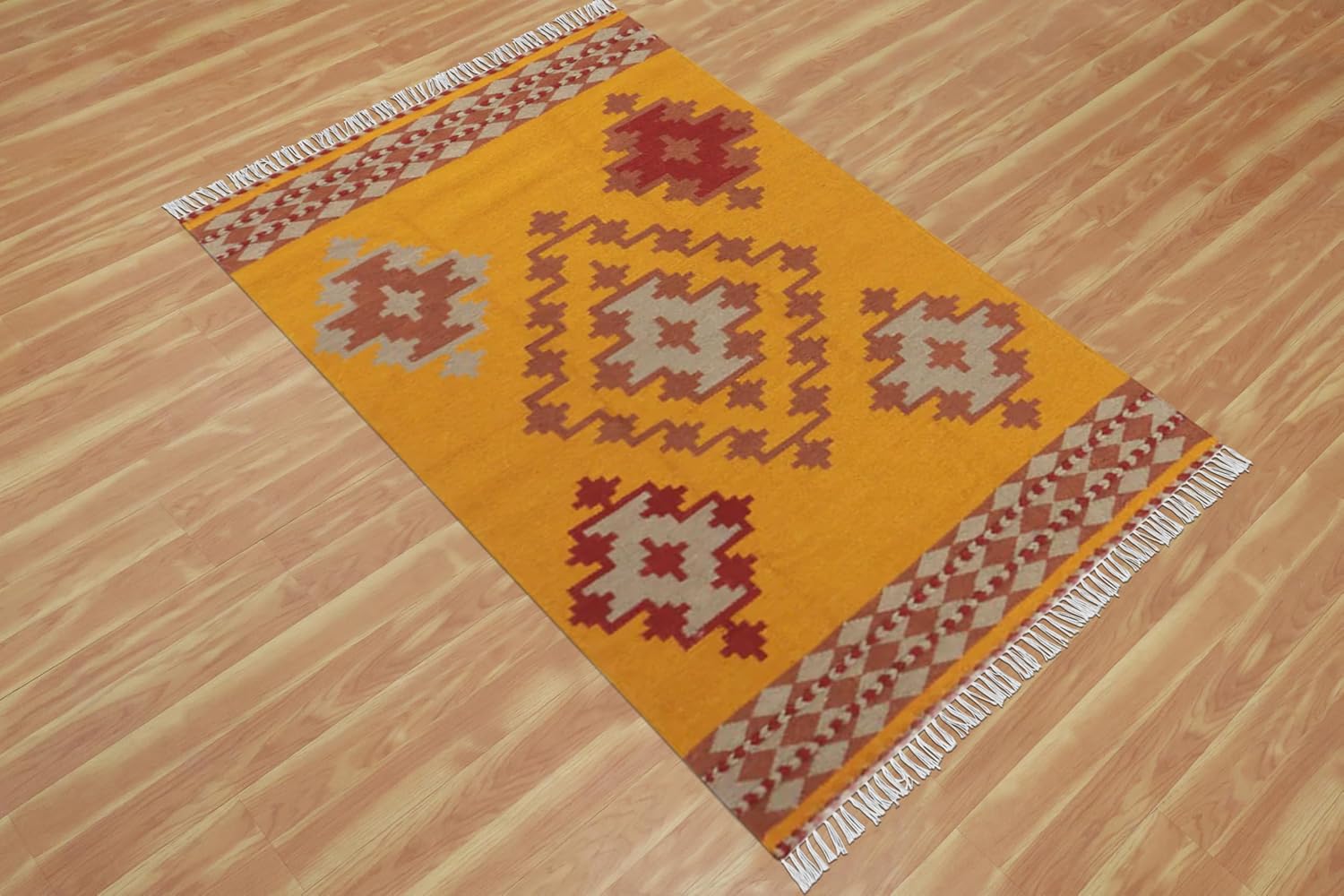 Top-Angebot: CASAVANI Boho Vintage Kilim Rug 9 x 15 Inch Yellow Geometric Large Rug Artwork Wool Jute Kilim Hand Woven Large Kilim Rug for Bedroom Kitchen Living Room Luxurious