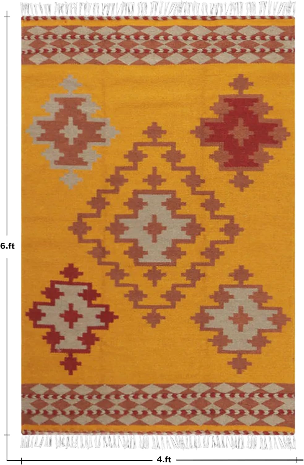 Empfehlung: CASAVANI Boho Vintage Kilim Rug 9 x 15 Inch Yellow Geometric Large Rug Artwork Wool Jute Kilim Hand Woven Large Kilim Rug for Bedroom Kitchen Living Room Luxurious