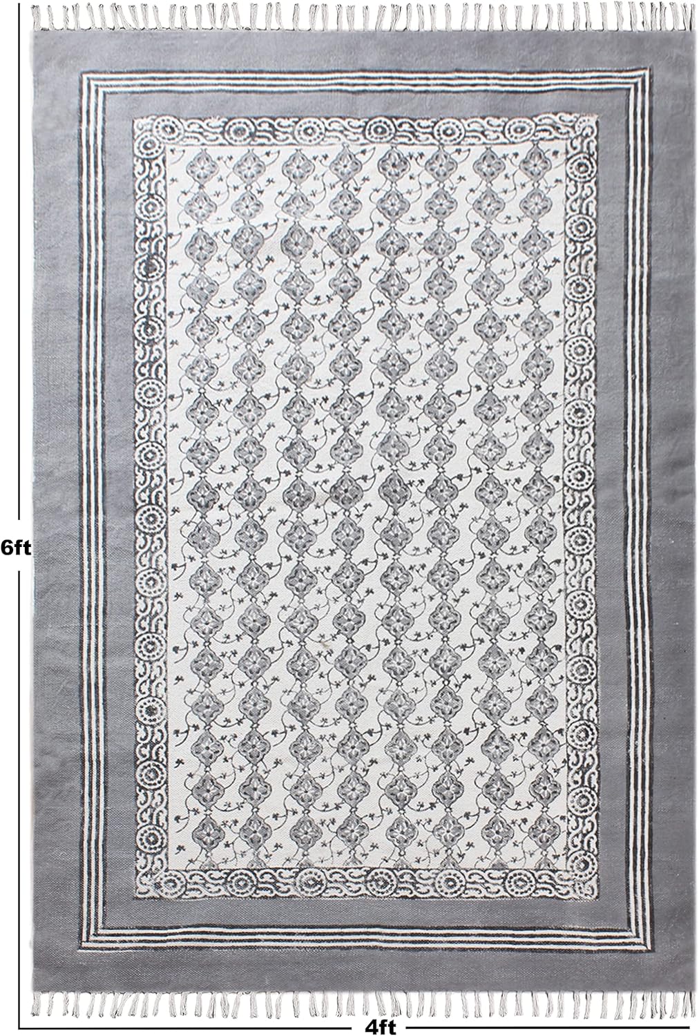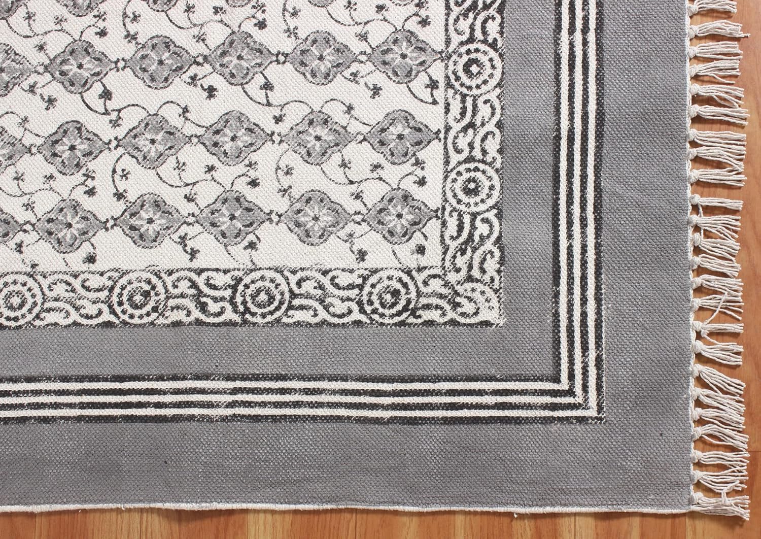 Empfehlung: CASAVANI Collection Rectangle Area Rug – 9x12ft, Grey and Beige Oriental Pattern Cotton Dhurrie Indoor Outdoor Mat for Bedroom Dining Living Room