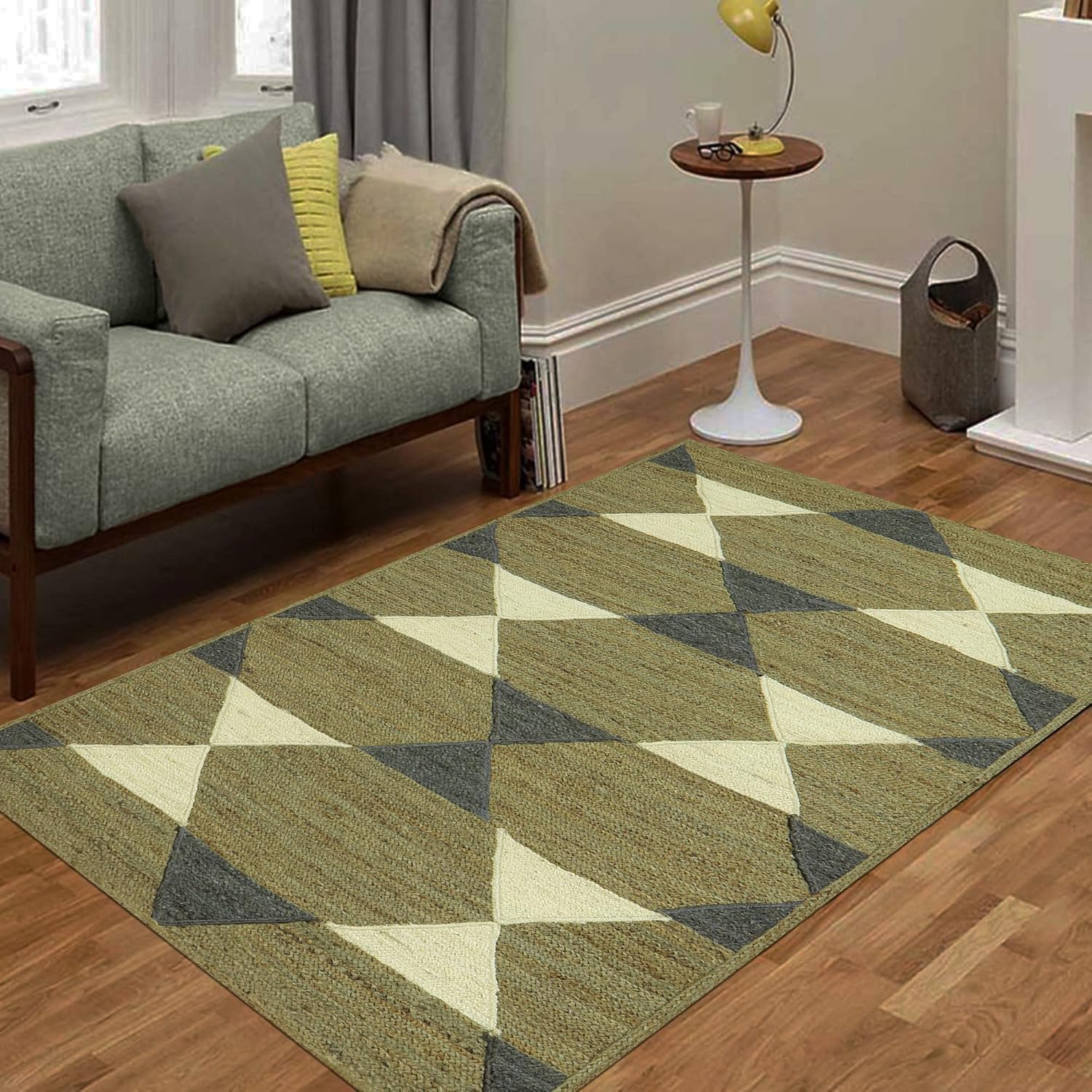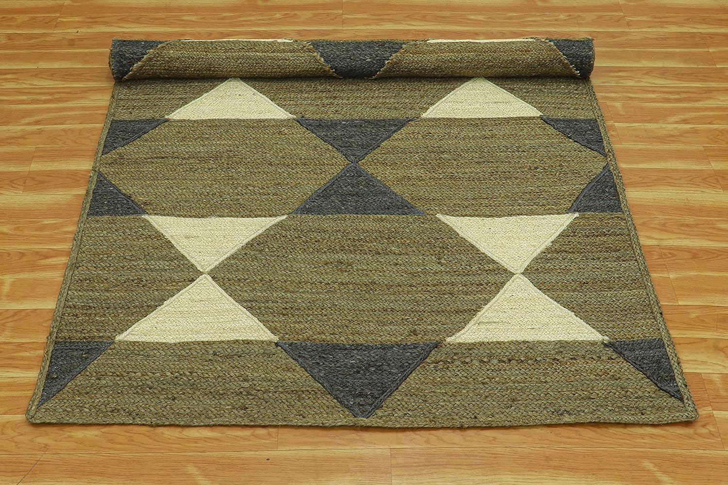 Top-Angebot: CASAVANI Indian Natural Fiber Rug Geometric Green Multicolor Jute Rug Home/Office Decorative Rug for Bedroom Living Room Kitchen and Balcony 3x45cm