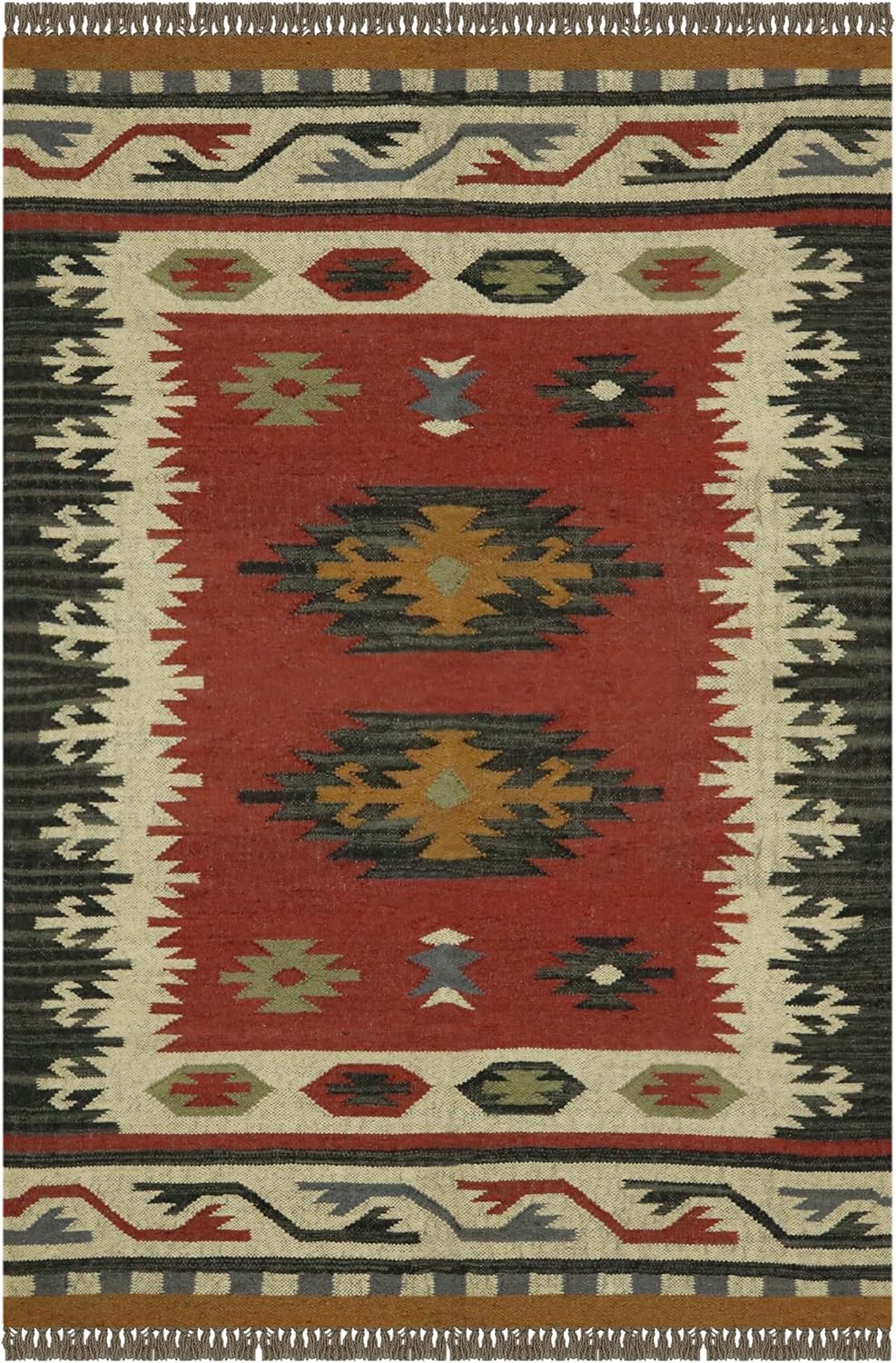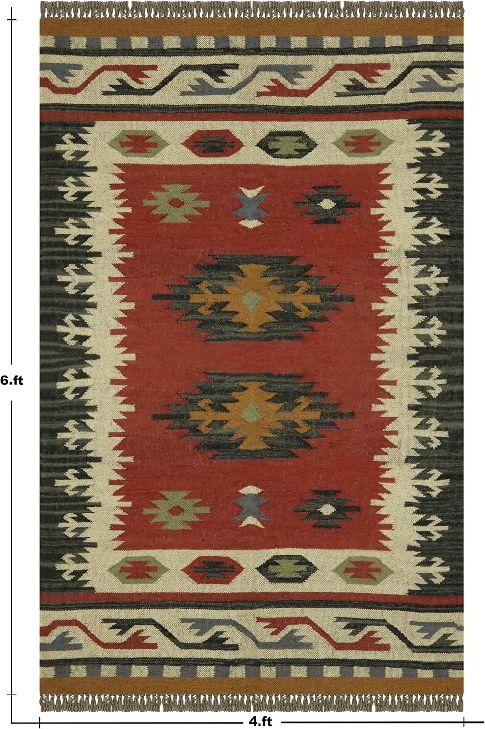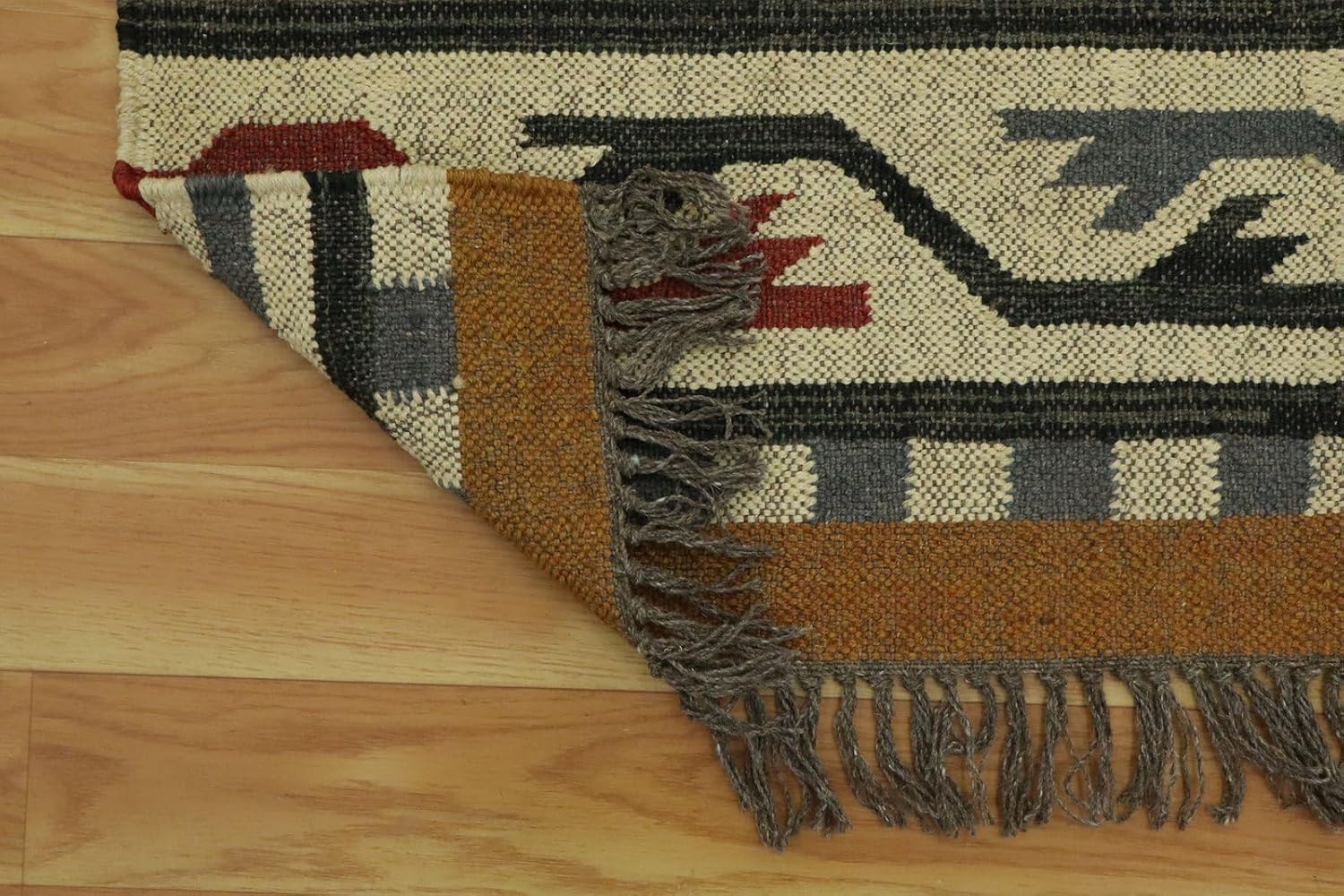Top-Angebot: CASAVANI Kelim Area Rug 7 x 10 Large Wool Jute – Red & Black Natural Hand Woven Flat Weave Rug for Indoor/Outdoor Ideal for High Traffic Lake House Bedroom Dining Room Living Room