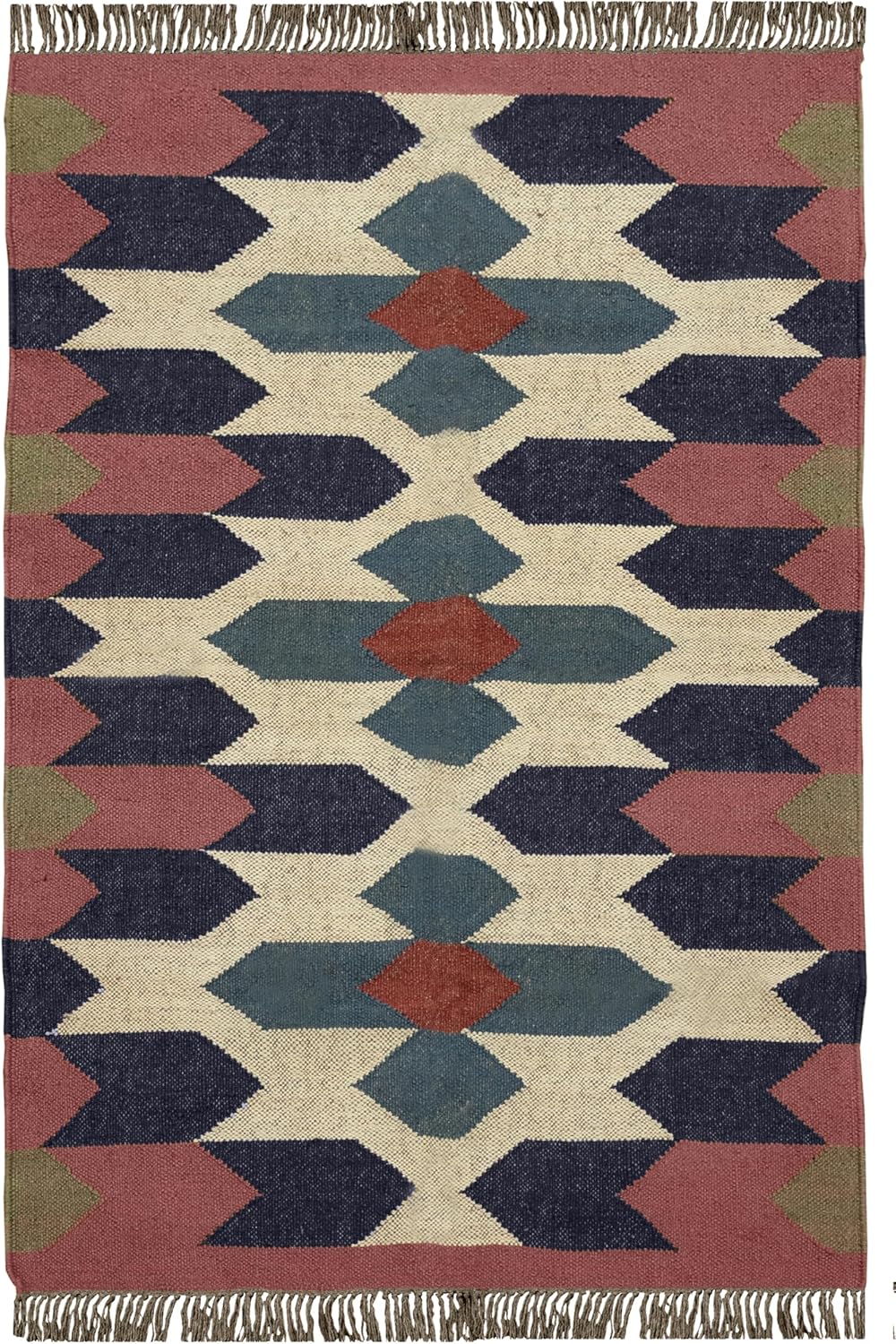Empfehlung: CASAVANI Kilim Large Rug Wool Jute 9×12 Inches Stunning Pink Blue Natural Flat Weave Wool Jute Handmade Rug for Playroom Bedroom Dining Living Room