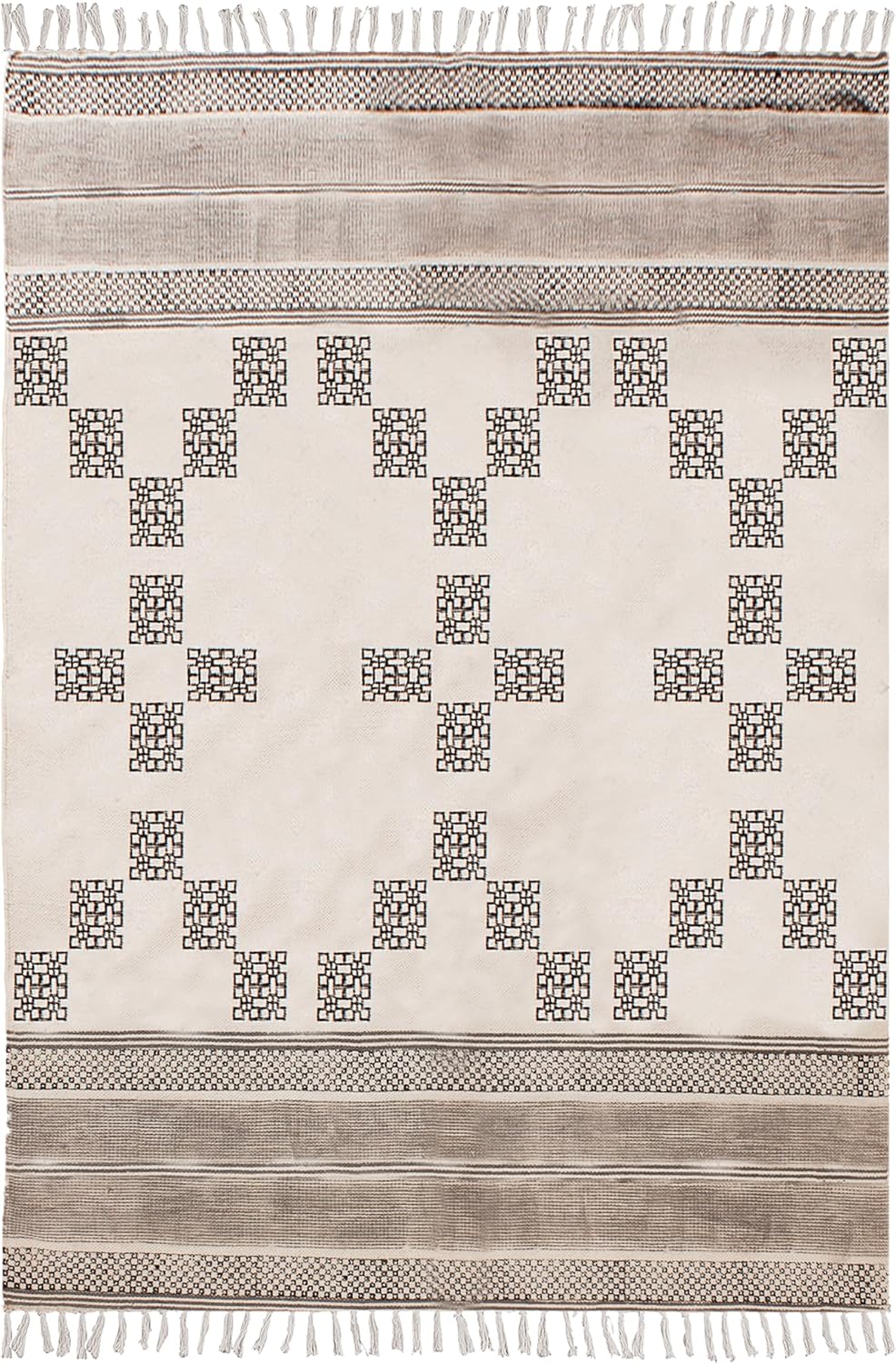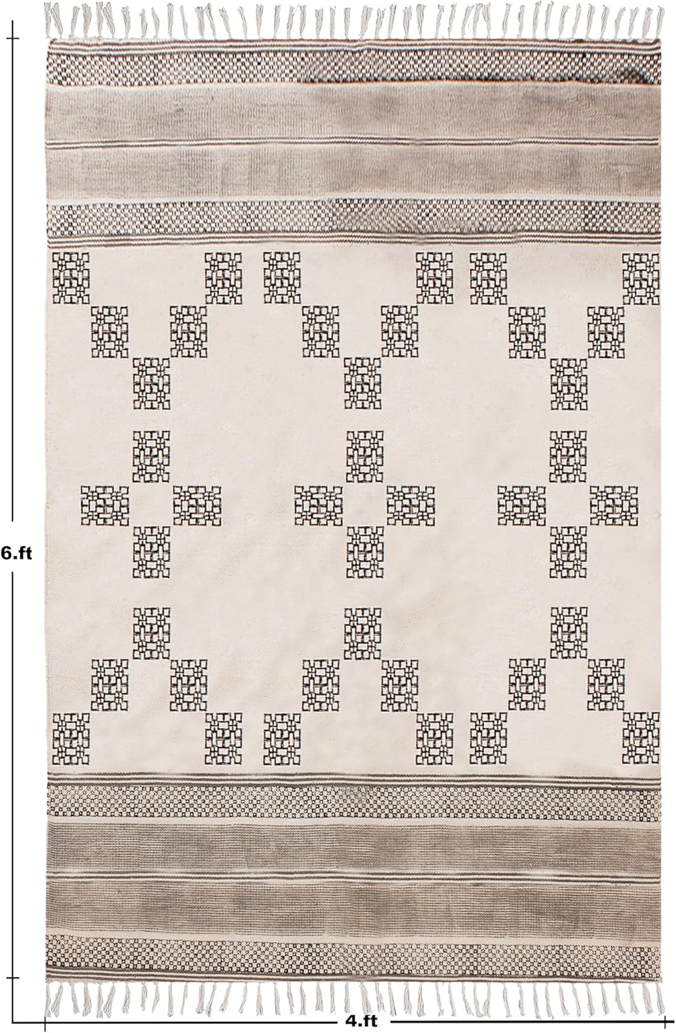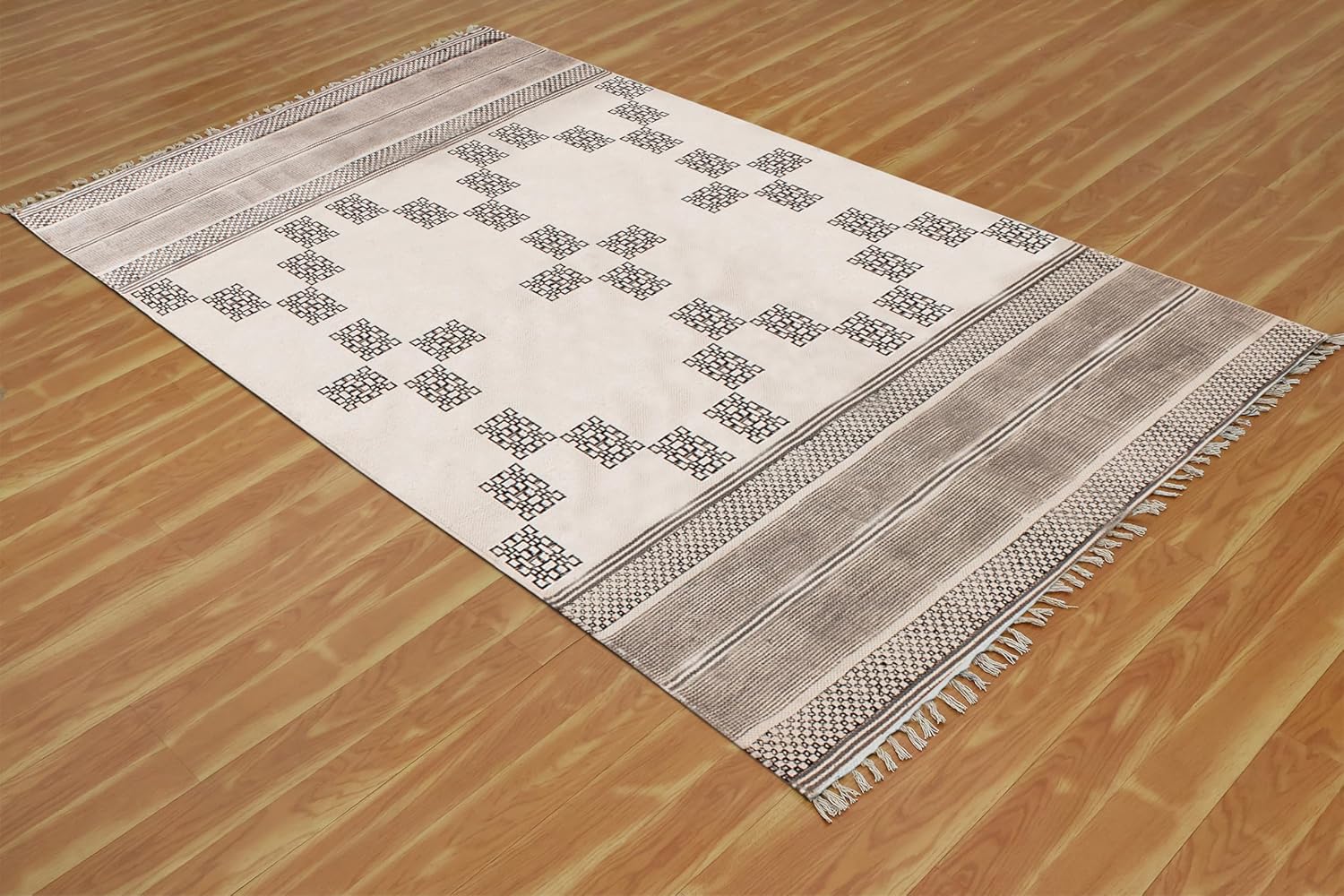 Top-Angebot: CASAVANI Kilim Rug Hand Printed Cotton Dhurrie Hand Surface Moroccan Design 0.5cm Thick Handmade Boho Rug Indoor Outdoor Flat Weave for Living Room