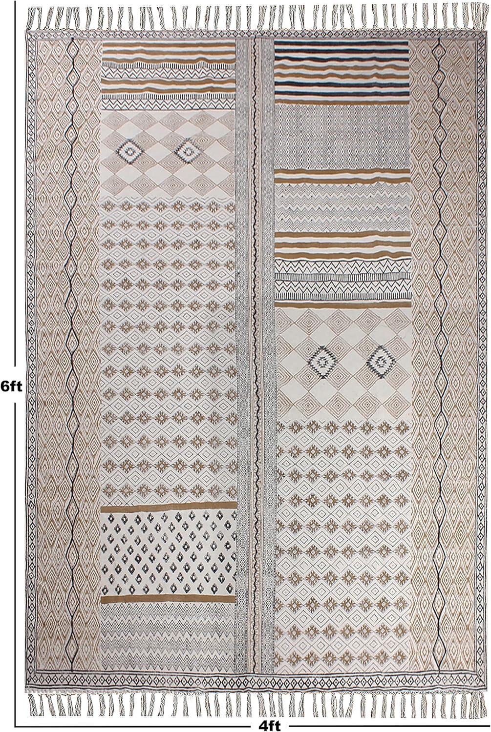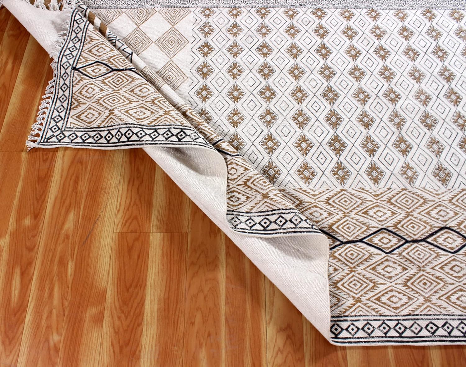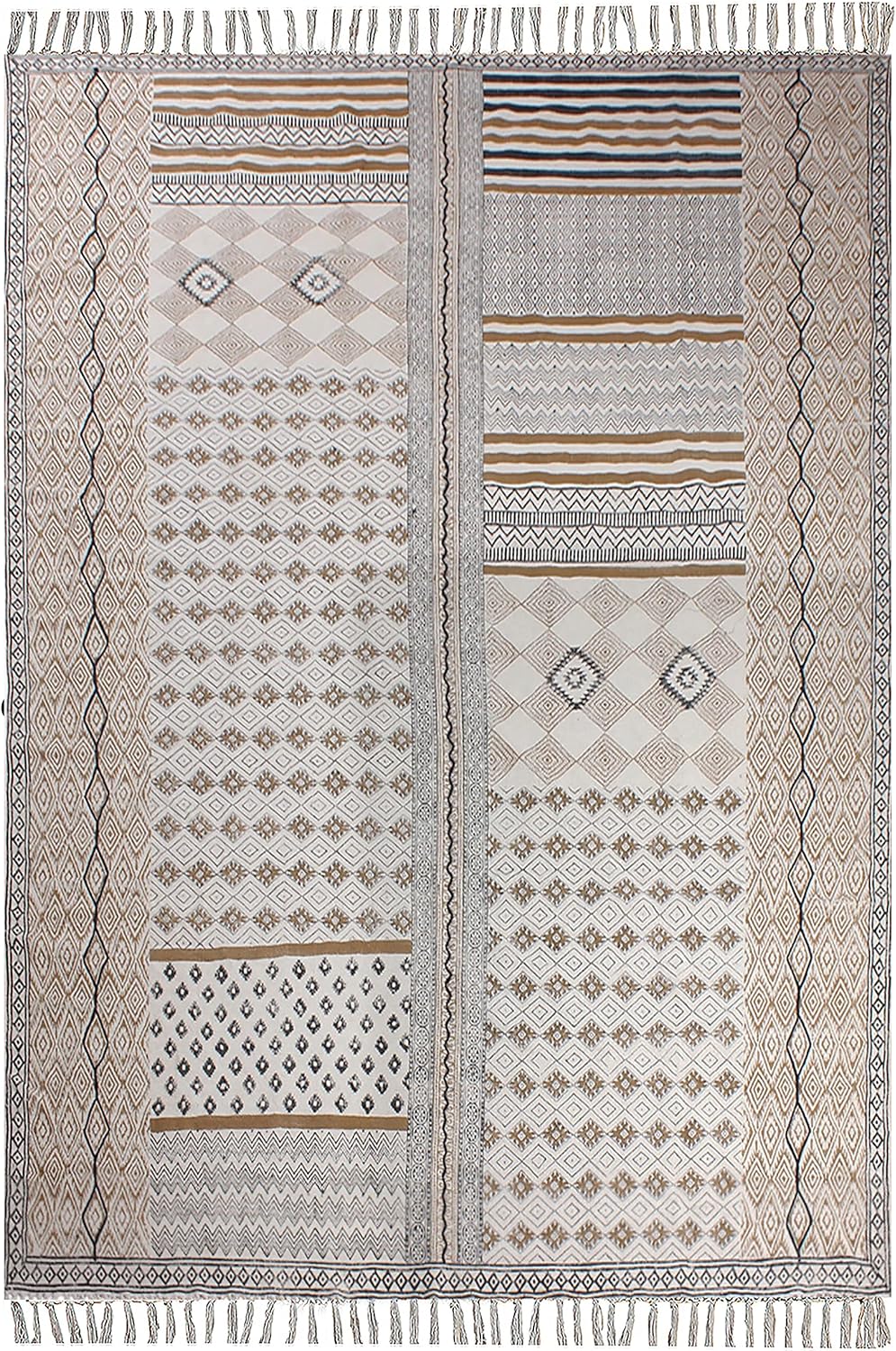 Top-Angebot: CASAVANI Rug for Bedroom Handmade Cotton Dhurrie Hand Block Print Rug Boho Kilim Flat Woven Throw Rug 240x330cm (8x11ft)