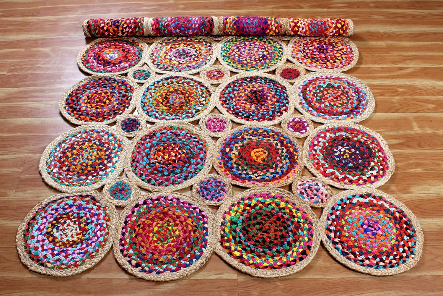 Top-Angebot: CASAVANI Spinrific Solid Modern Outdoor Cotton Chindi Rug Indian Handmade Jute Rug Natural Environmentally Friendly Cotton Rug Kitchen Living Room Rug Home Rug (360 x 360 cm (12 x 12 Foot Square))