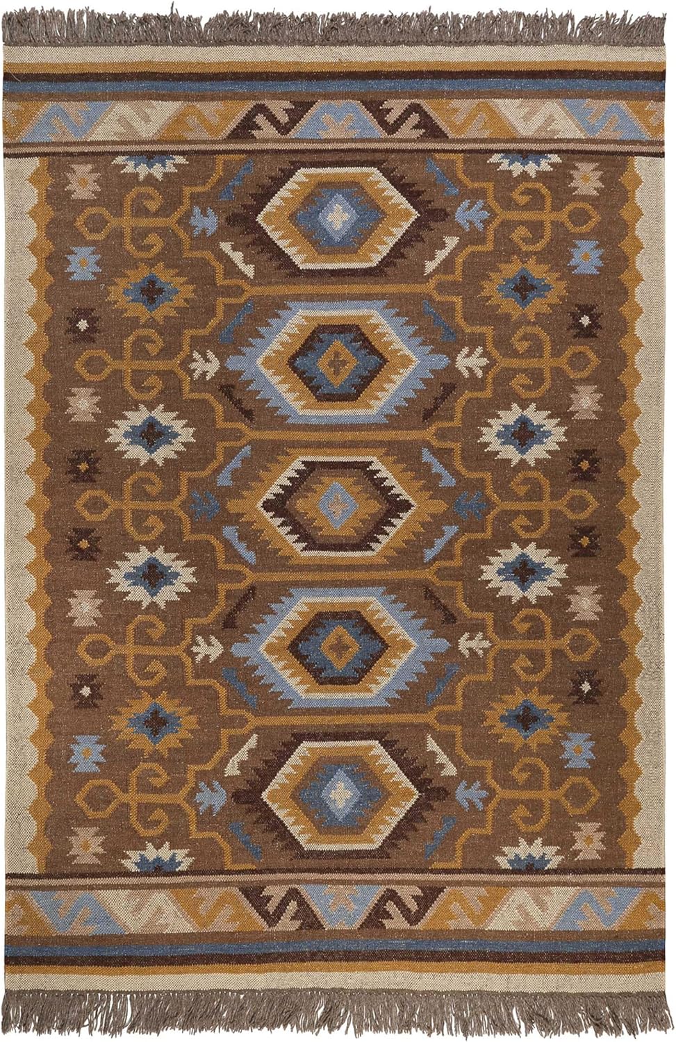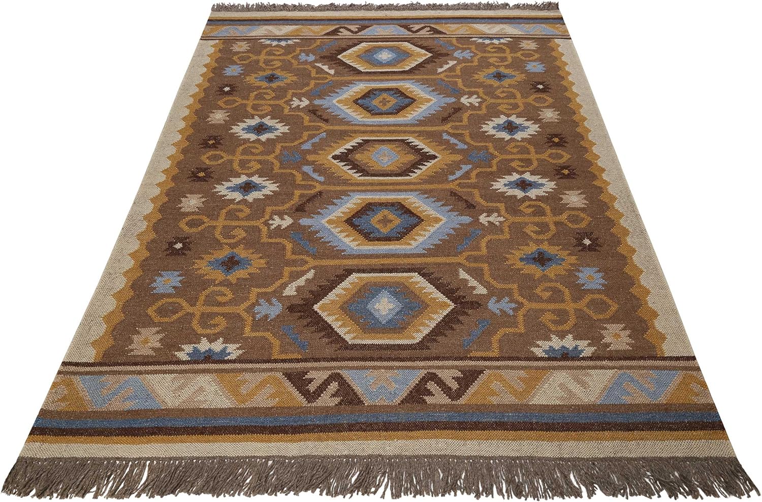 Top-Angebot: green looop Valere Modern Kilim Rug Made of Wool Handwoven and Sustainable for Living Room, Bedroom and More (240 x 340 cm, Brown)