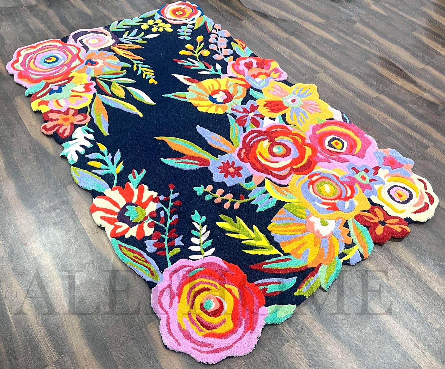 Jetzt entdecken: Hand Tufted Rug Floral Design 100% New Zealand Wool Soft Stylish Decorative Rug for Living Room Bedroom Home Decoration (8×10 inch, Dark Blue)