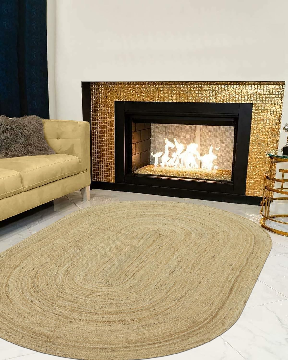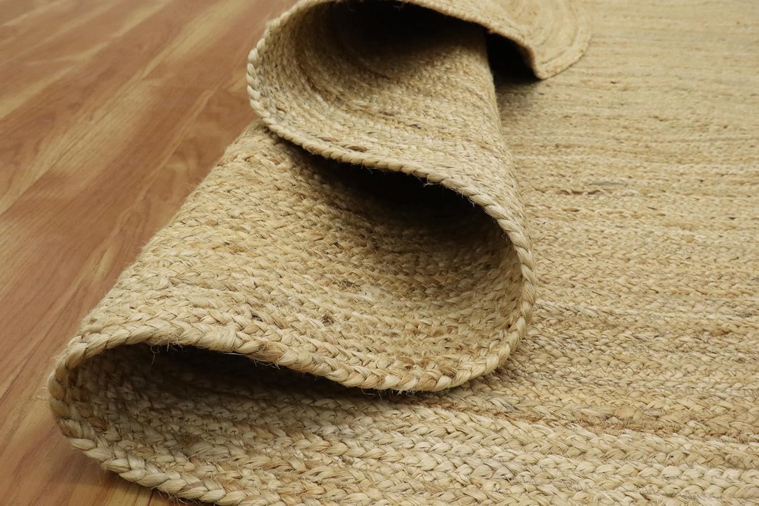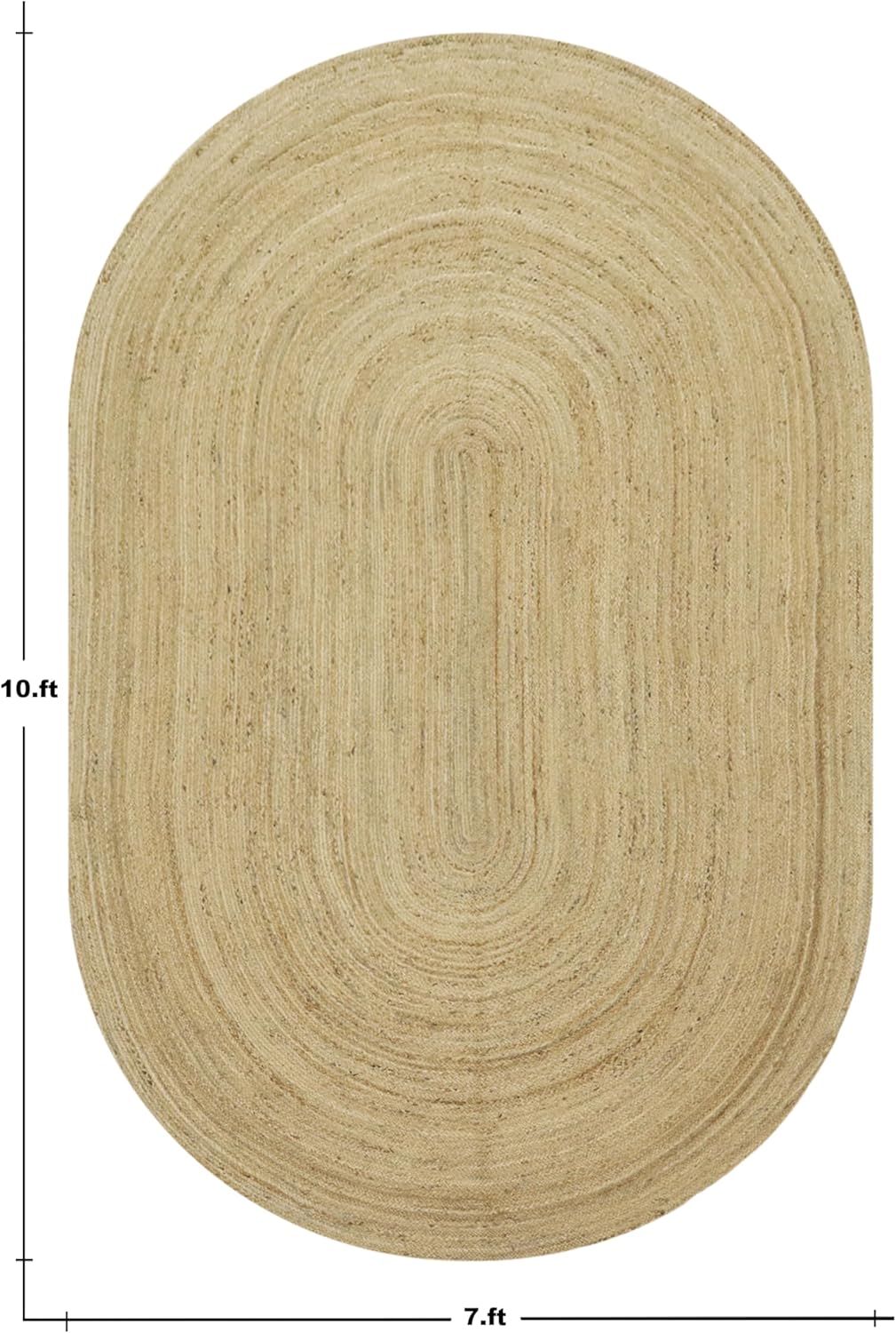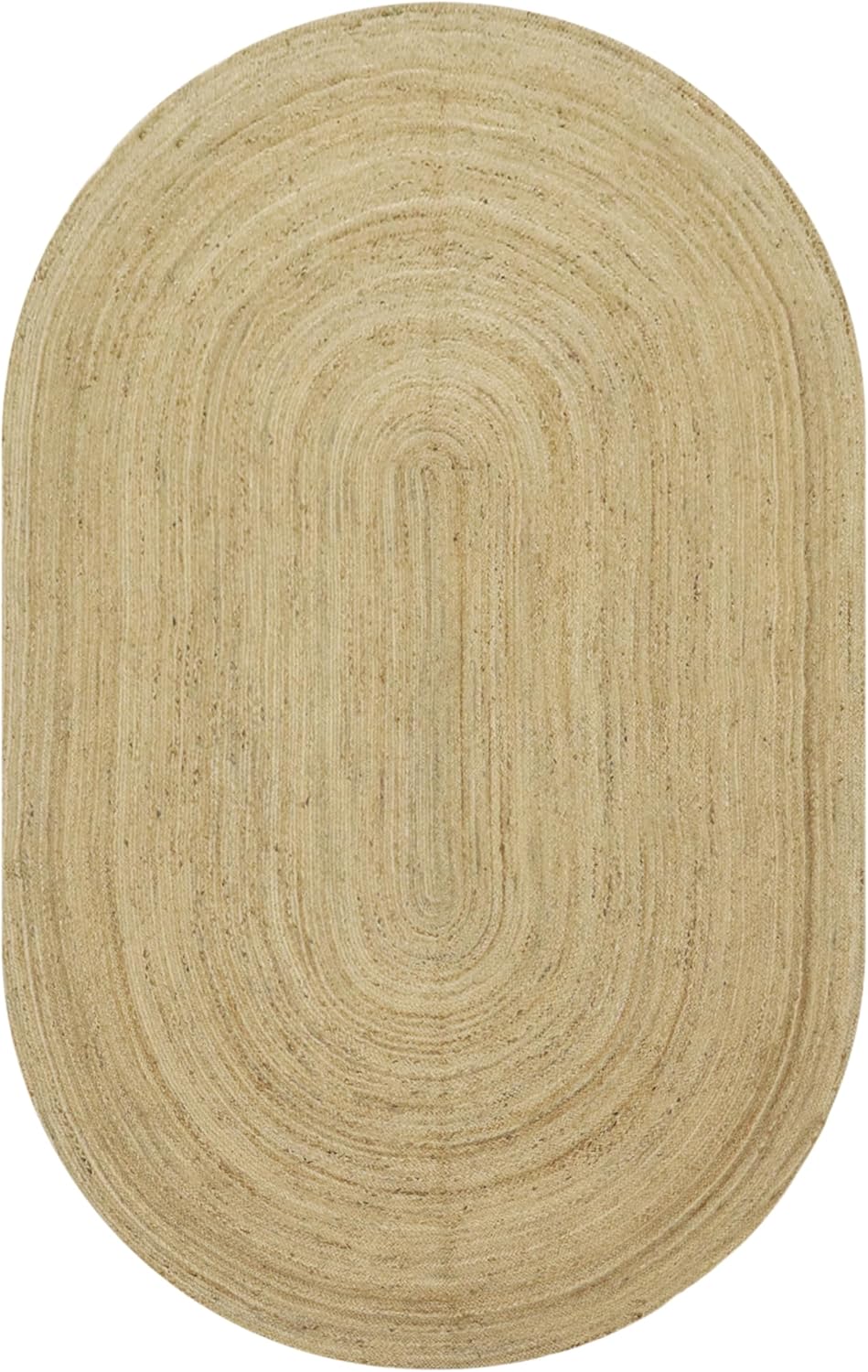Top-Angebot: Kilim Oval Rug, Hand-Woven Jute Plain Beige Pattern, Natural Jute, Thickness 0.7 cm, Hand-Woven Flat Rug for Indoor and Outdoor Use, Ideal for Living Room, Bedroom, Office, Large
