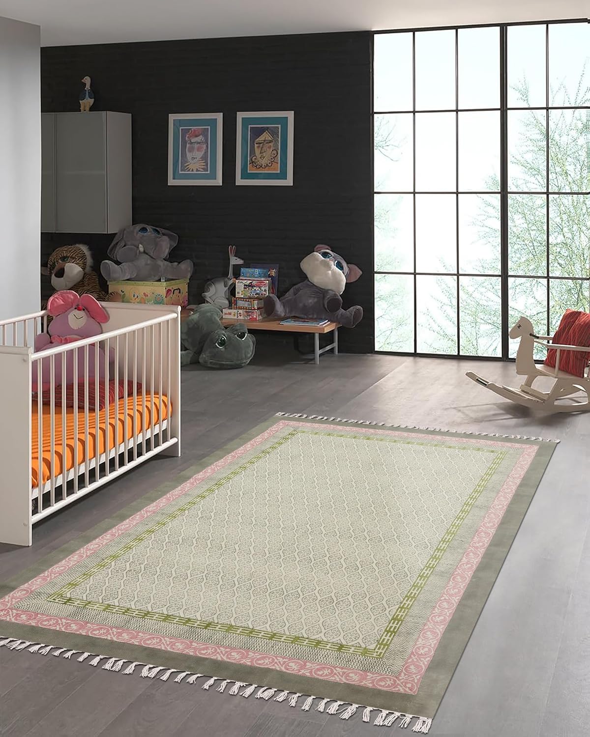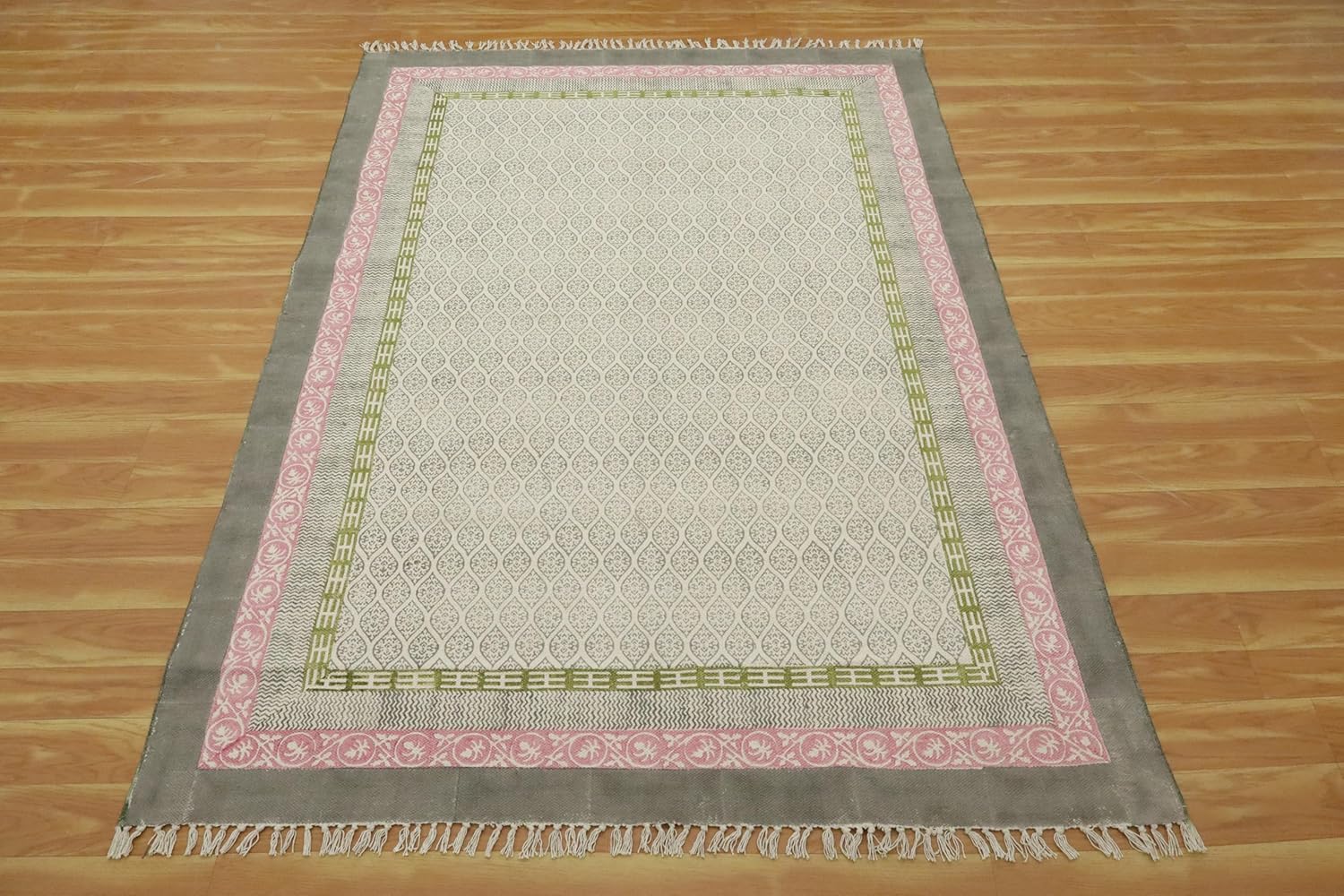 Empfehlung: Kilim Rug Handmade Boho Indoor Outdoor Flat Weave Thick 0.5cm Easy Wash Geometric Design Grey Beige Hand Printed Cotton Dhurrie for Bedroom