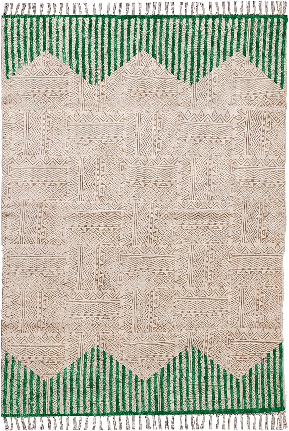 Ein handgeknüpfter Orientteppich ist nicht nur ein Bodenbelag – er ist Kunst, Kultur und Wertanlage zugleich. Mit dem Kilim Rug Handmade Boho Indoor Outdoor Flat Weave Thick 0.5cm Easy Wash Striped Design Green Beige Hand Printed Cotton Rugs for Bedroom Living Room holen Sie sich ein Stück Geschichte in Ihre vier Wände.
