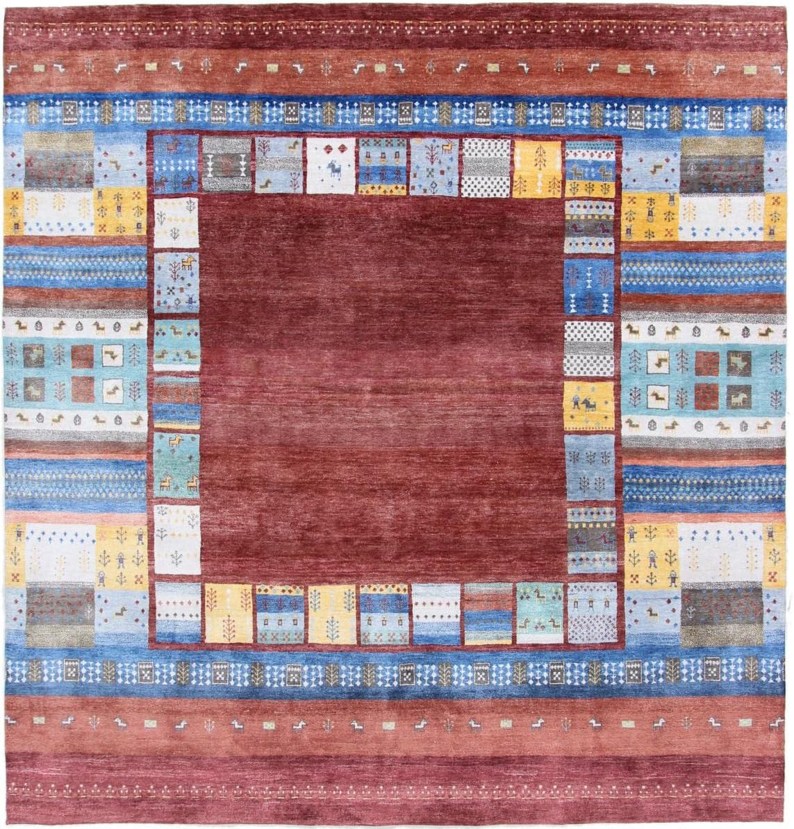 Top-Angebot: Nain Trading Gabbeh Loribaft 255 x 251 cm Hand-Knotted Modern Oriental Rug, Square Rug, India