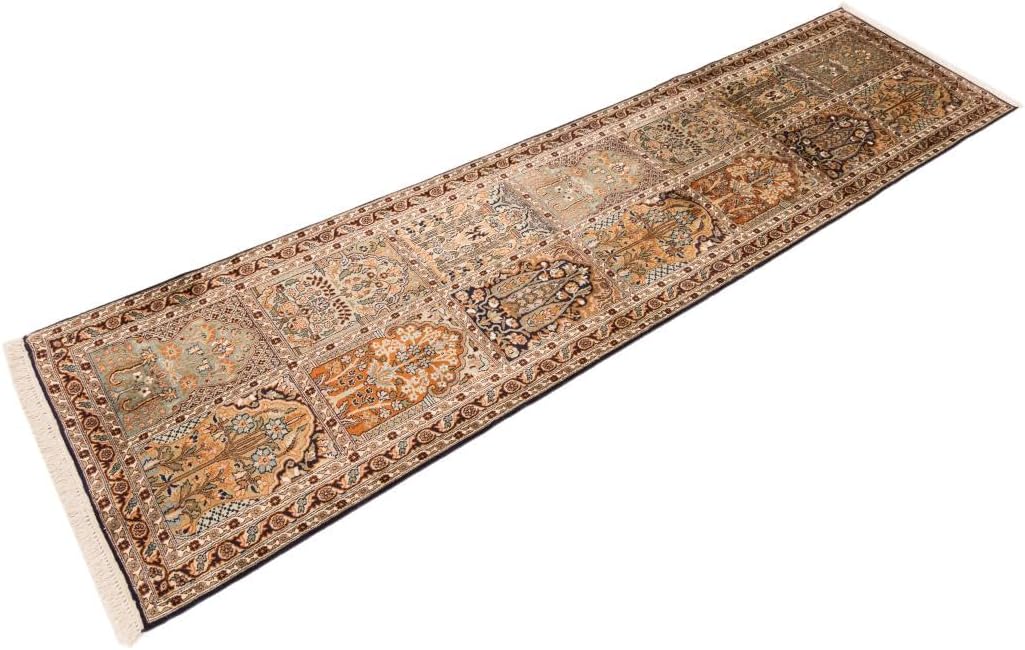 Jetzt entdecken: Nain Trading Kaschmir Seide 79×312 Handgeknüpft Orientteppich Läufer Teppich Seide Indien