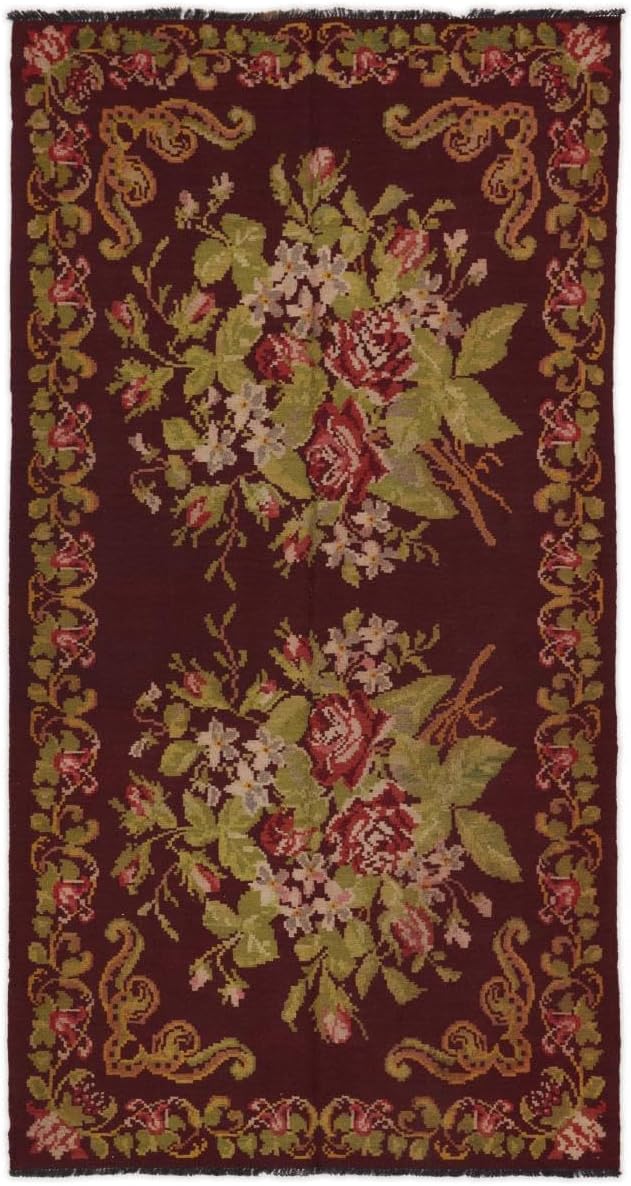 Top-Angebot: Nain Trading Kelim Rosen Alt 154×289 Handgeknüpft Orientteppich Läufer Teppich Wolle