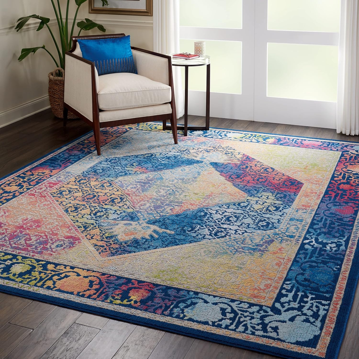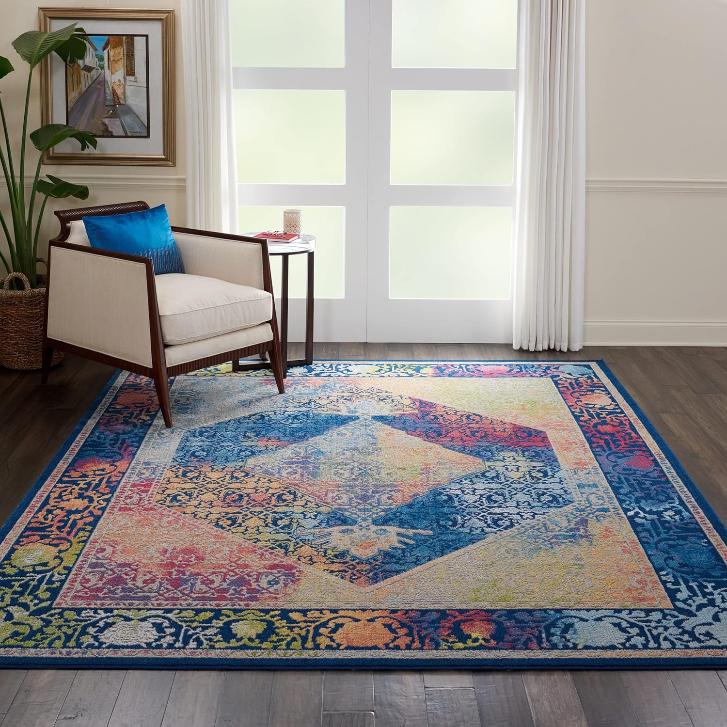 Top-Angebot: Nourison Ankara Global Traditional Rug for Living Room, Bedroom, Vintage Style, Oriental Quality, ANR04 Blue, Multicoloured, Size XL, 239 x 300 cm