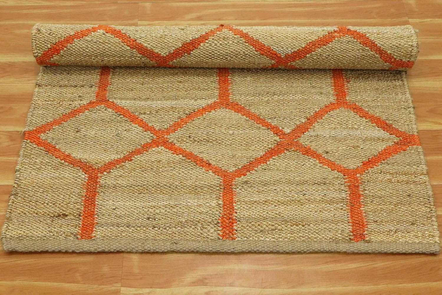 Empfehlung: Premium handgewebter 4×20 Kelim Jute Läufer Teppich – Geflochtenes Flachgewebe Geometrisches Design Orange & Beige – Strapazierfähige Fußmatte für Innen & Außen – Perfekt für Flur, Treppenhäuser, Flur