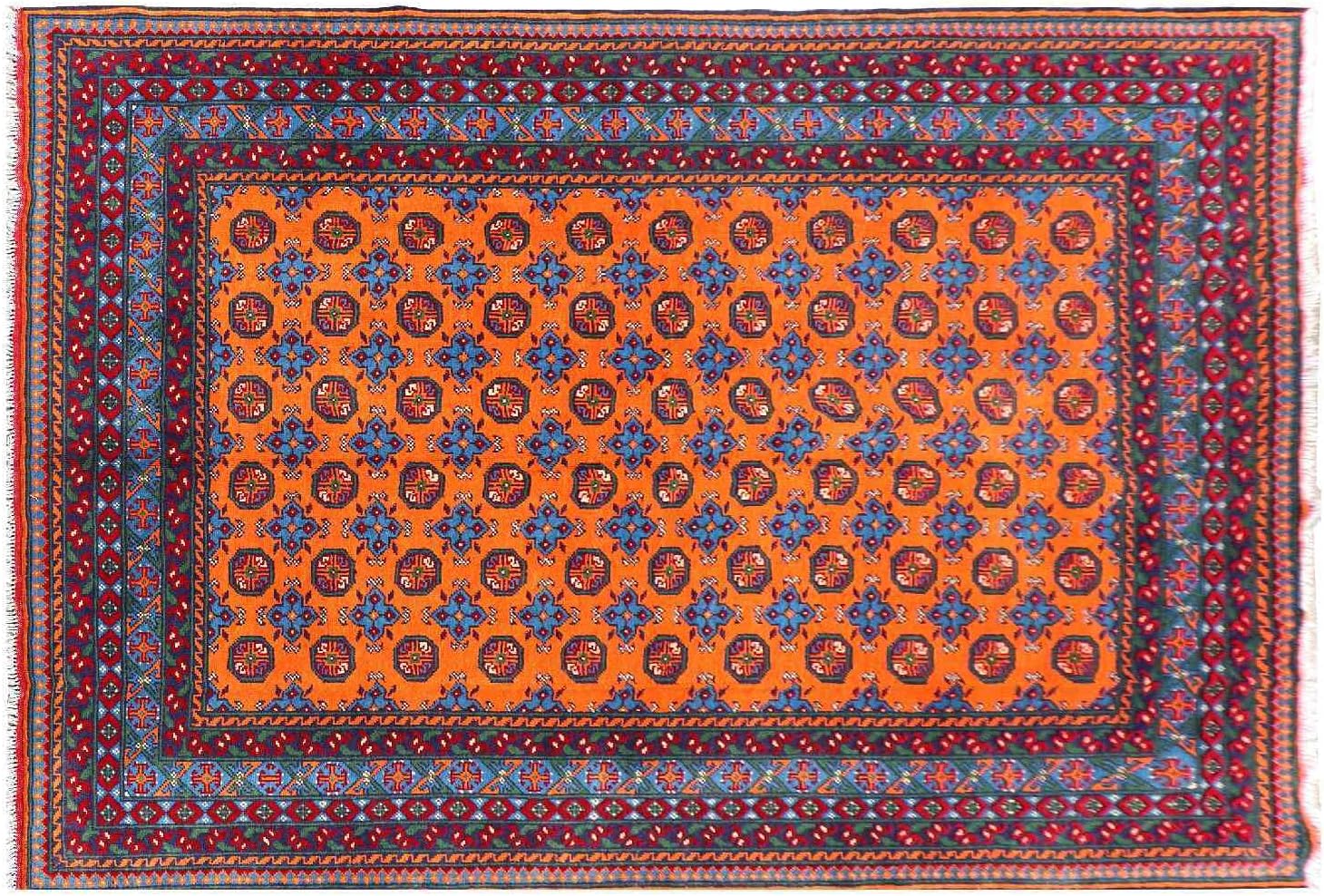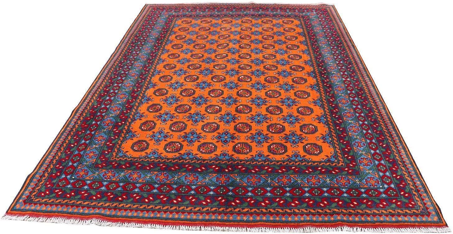 Top-Angebot: RUG PRINCE Afghan Aqcha Rug 200 x 300 cm Hand Knotted Orange Patterned Oriental Short Pile B