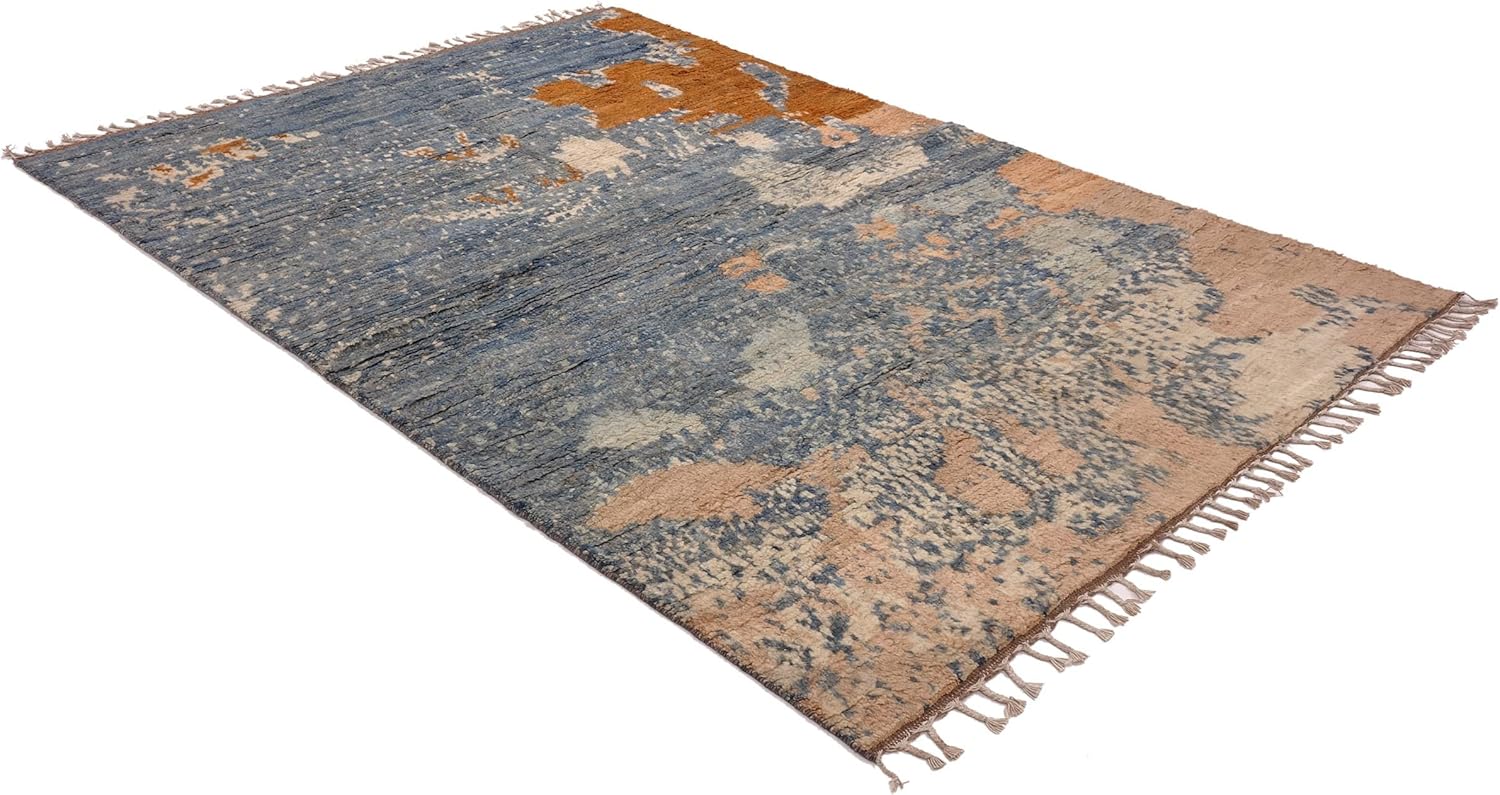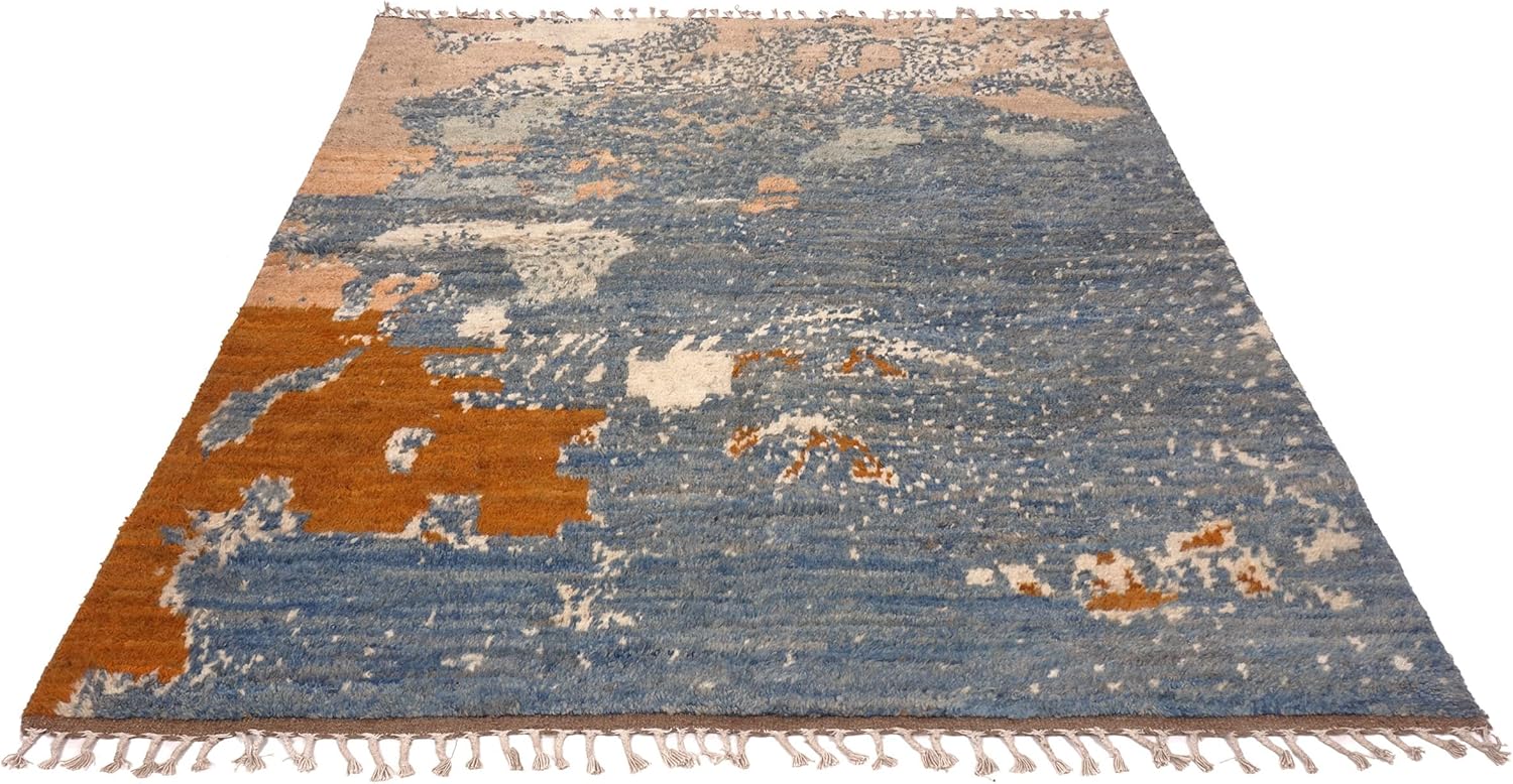 Top-Angebot: RUG PRINCE Afghan Berber Moroccan Design Rug 160 x 230 cm Hand Knotted Blue Modern Orient a