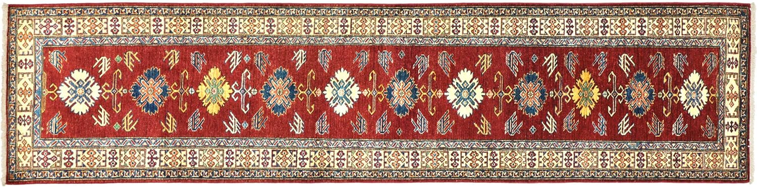 Top-Angebot: RUG PRINCE Afghan Kazak Fine Hand-Knotted Rug, 90 x 340 cm, Red Floral Pattern