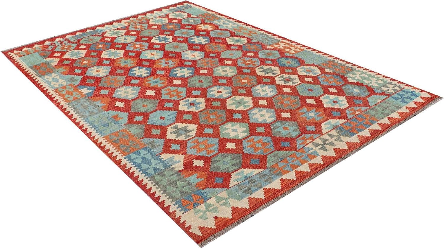 Top-Angebot: RUG PRINCE Afghan Maimana Kilim Rug, 200 x 300 cm, Handwoven, Colourful, Geometric, Handmade 105