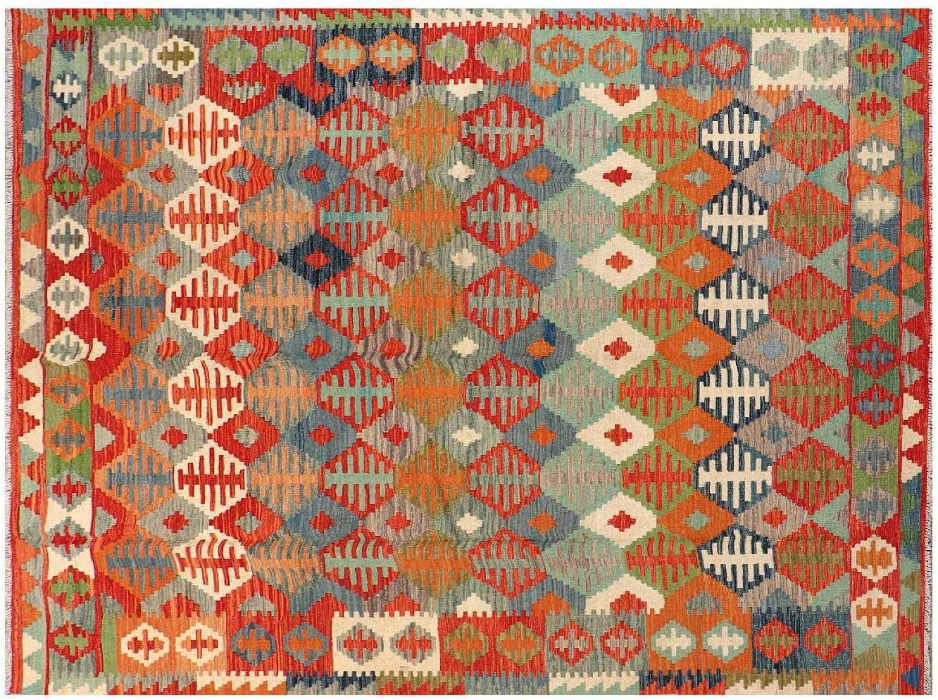 Top-Angebot: RUG PRINCE Afghan Maimana Kilim Rug, 200 x 300 cm, Handwoven, Colourful, Geometric, Handmade 127