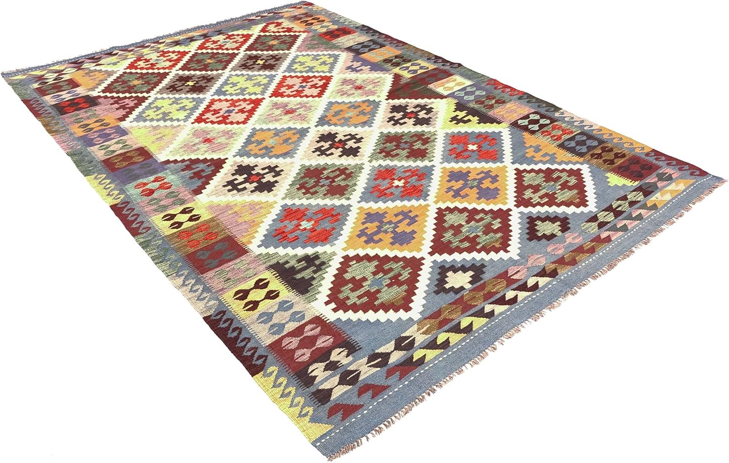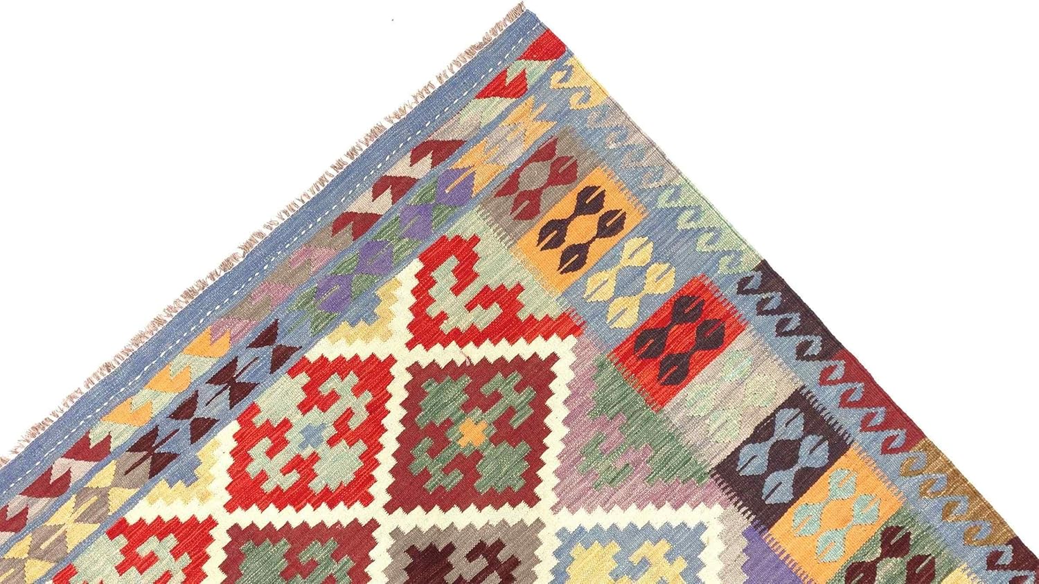 Top-Angebot: RUG PRINCE Afghan Maimana Kilim Rug, 200 x 300 cm, Handwoven, Colourful, Geometric, Handmade 143